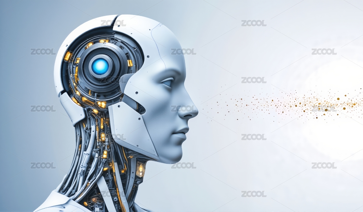 蓝色发光粒子生成人脸抽象虚拟人工智能插画
