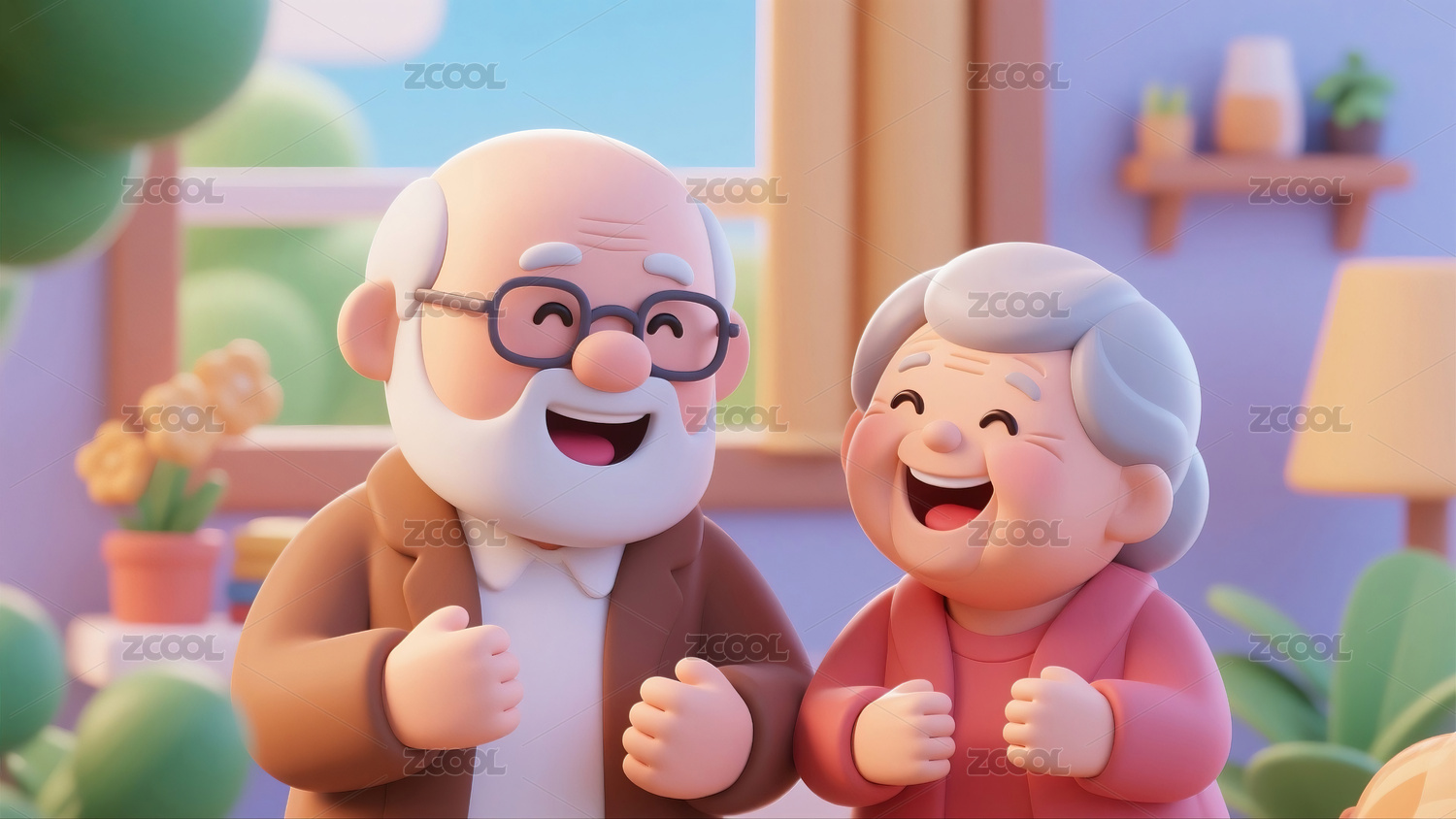重阳节,老人,AIGC202406,插画,父母,老妇人,老男人,父亲,母亲,重阳