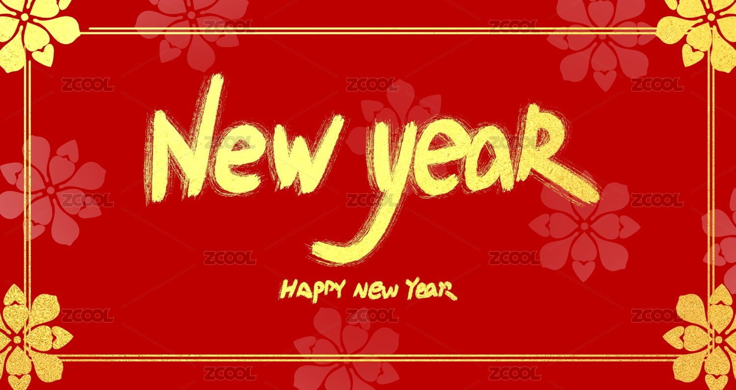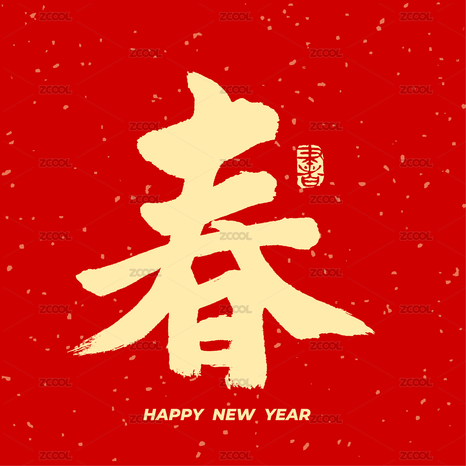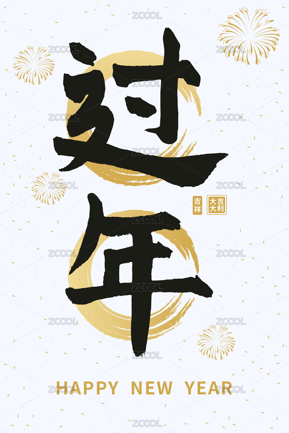 2020年新年鼠年春节手写书法字,纸上新年插画背景