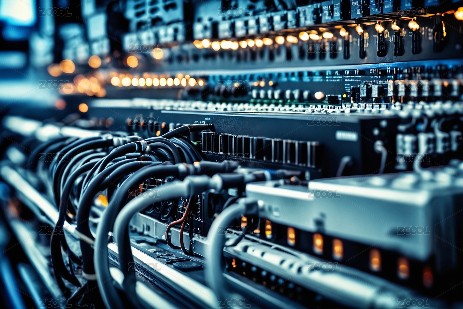 数据中心服务器网络设备特写.