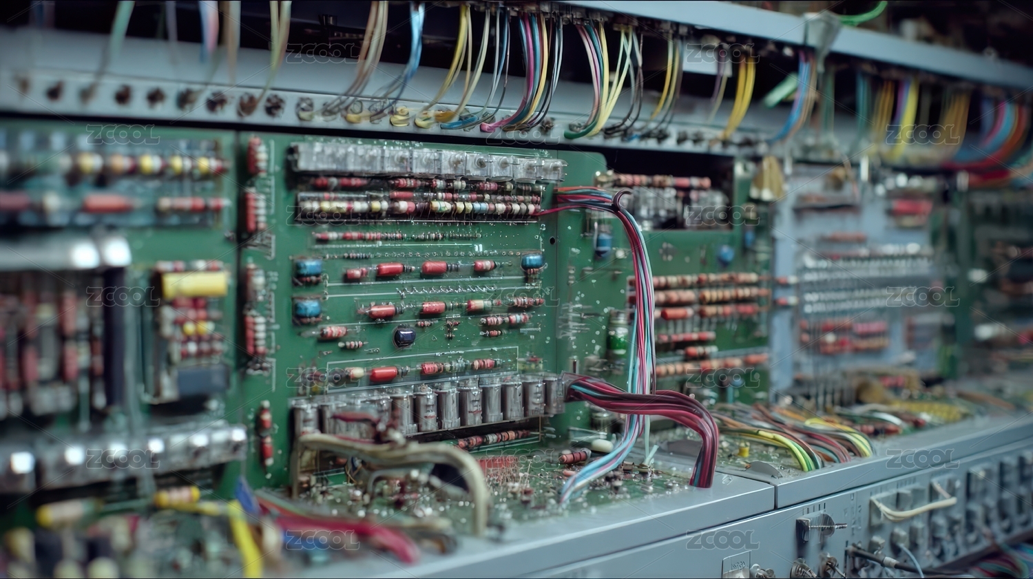 复杂电路板与连接线的特写