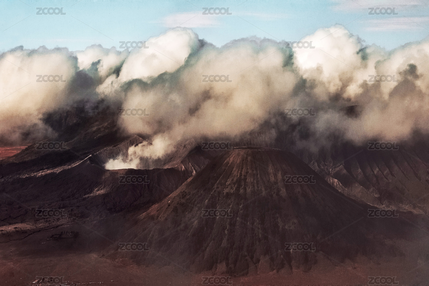印度尼西亚的布罗莫火山的火山口在冒出浓烟