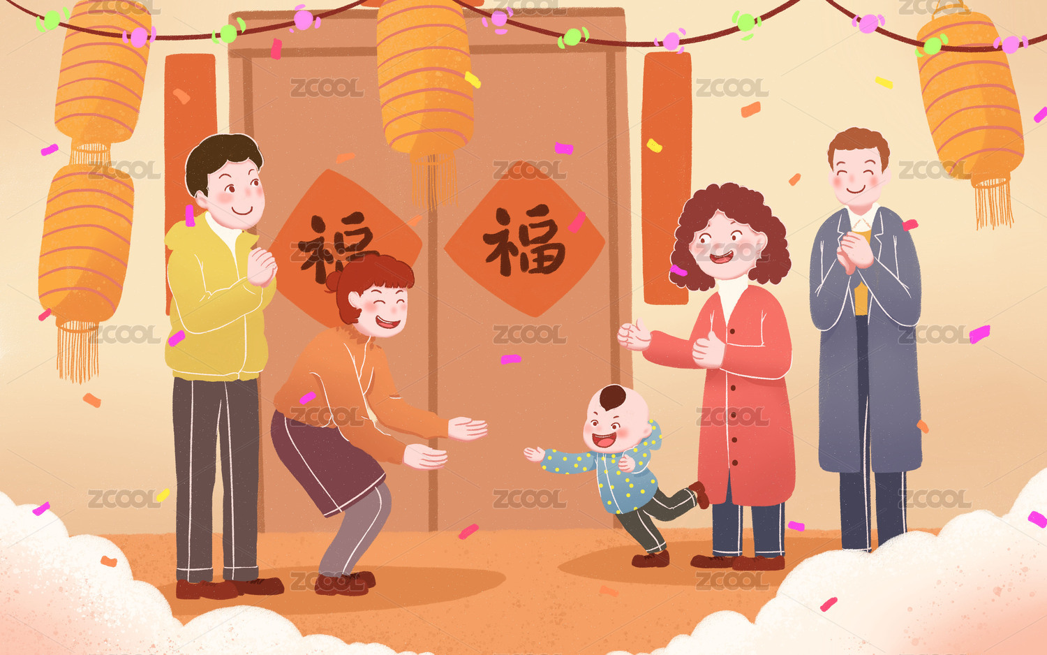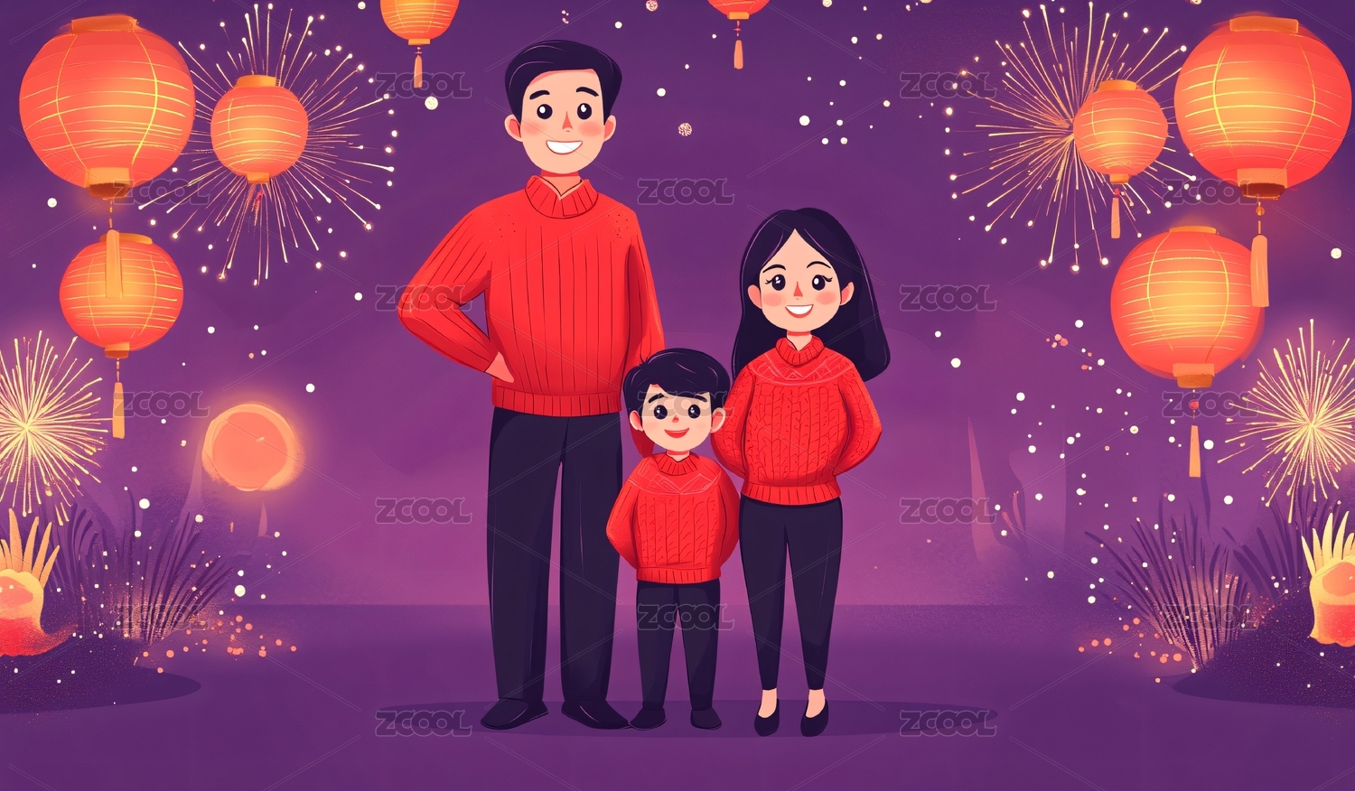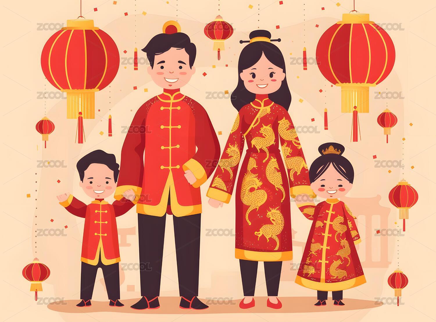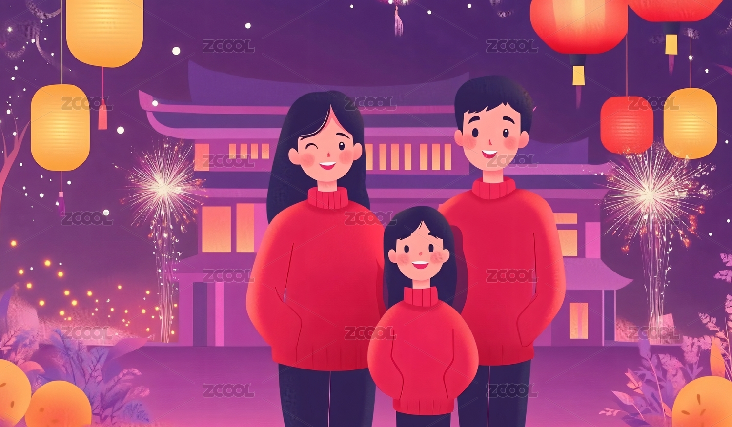 一家人团圆全家福家庭幸福团聚节日聚会插画