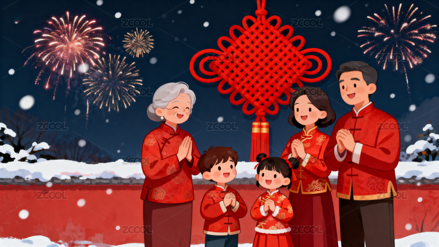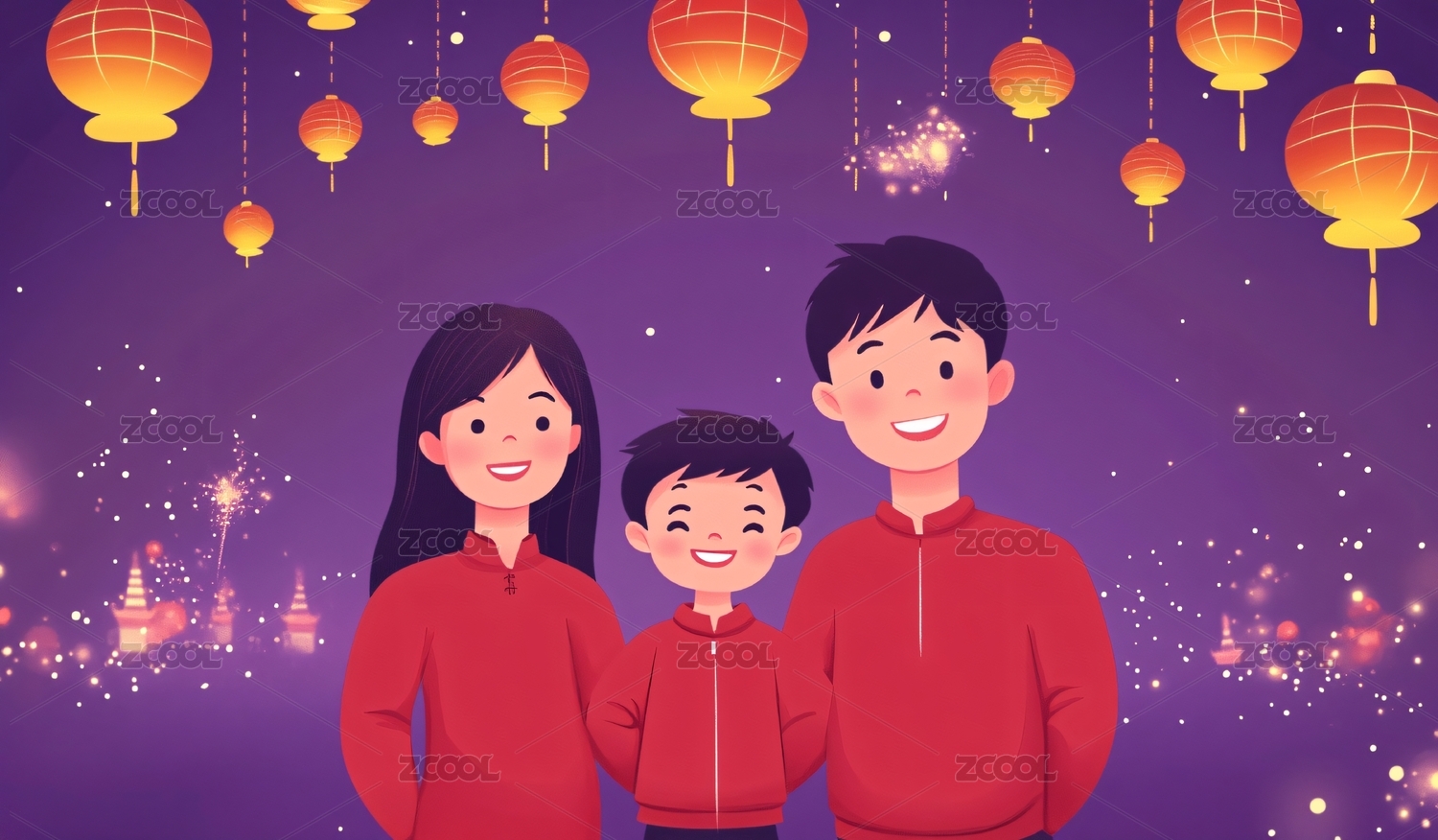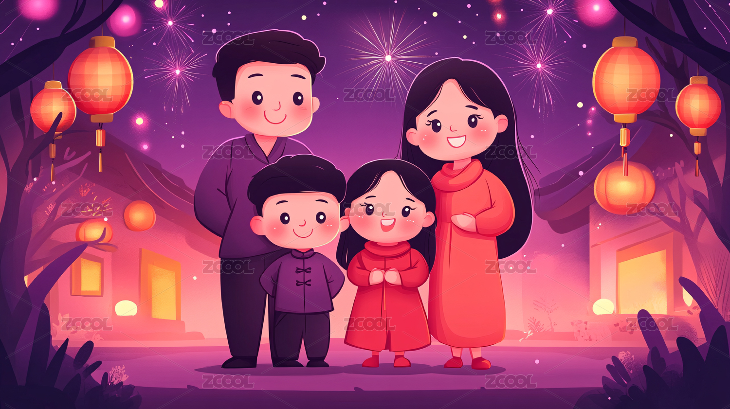 一家人团圆全家福家庭幸福团聚节日聚会插画