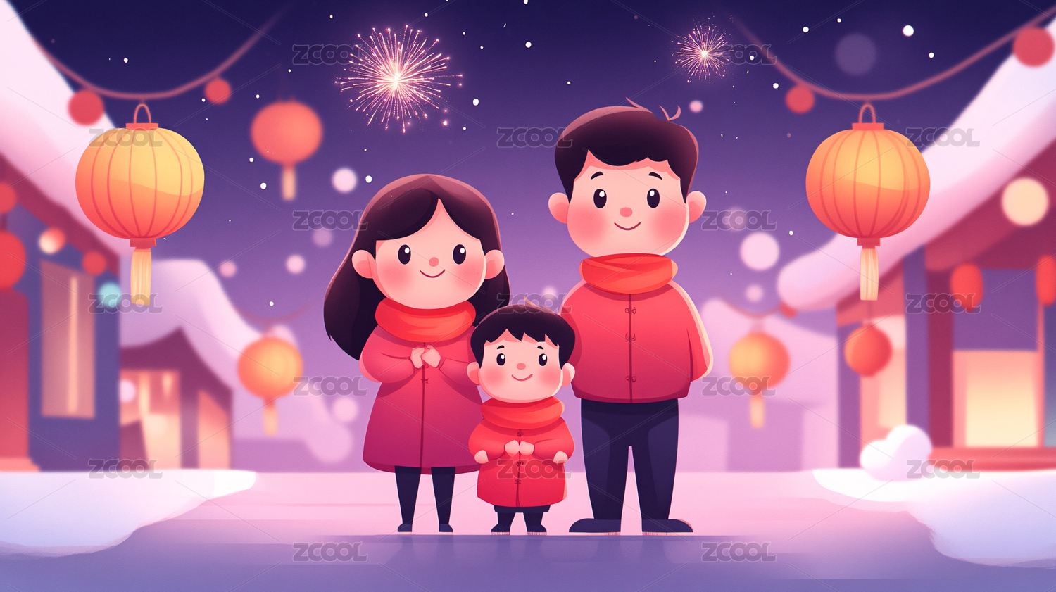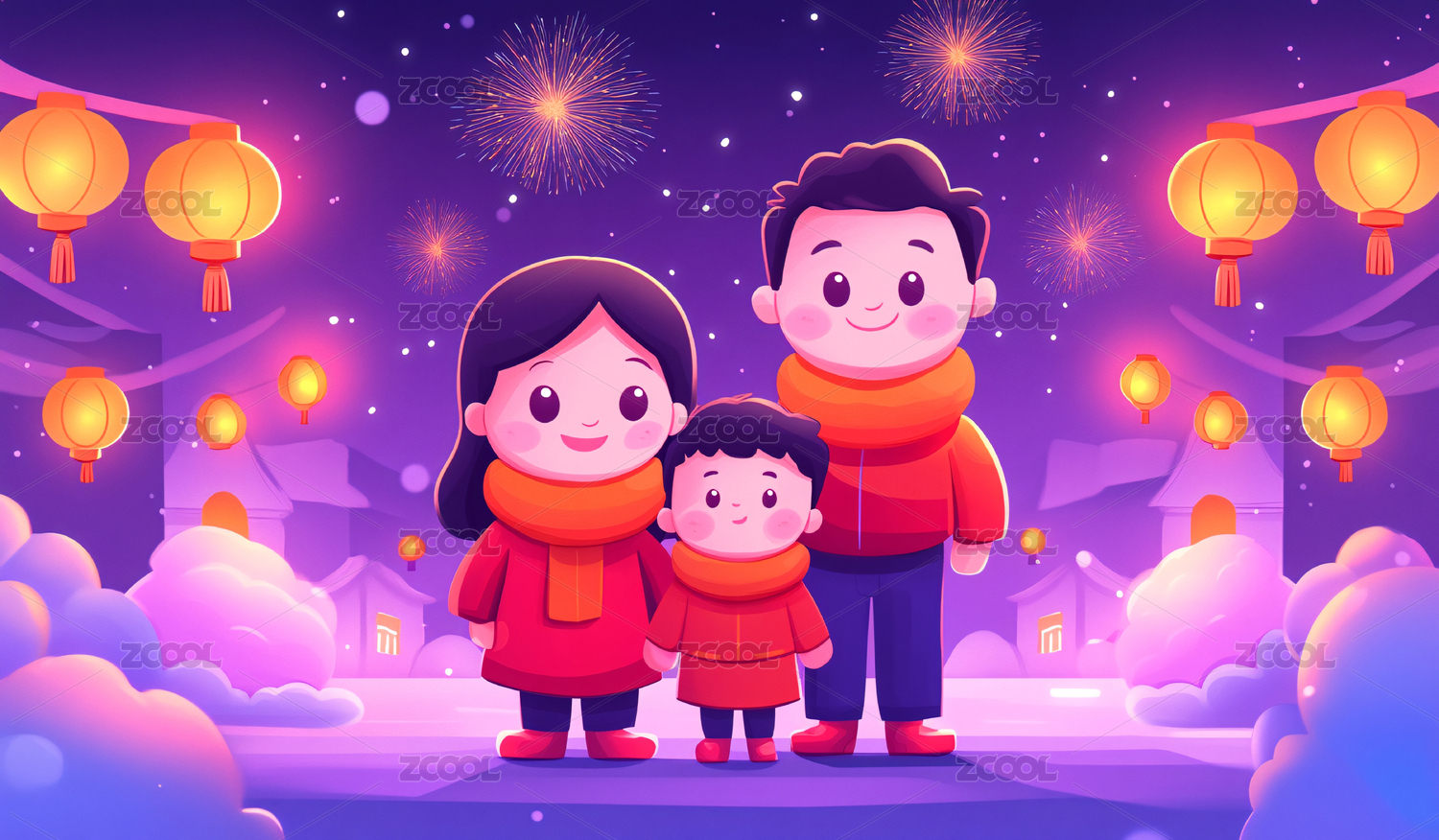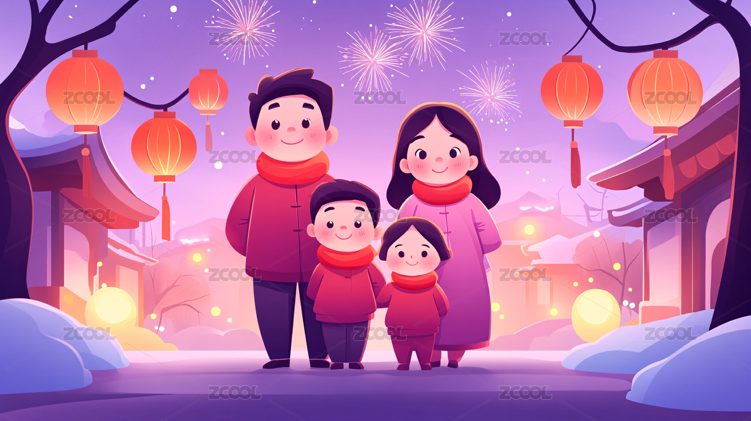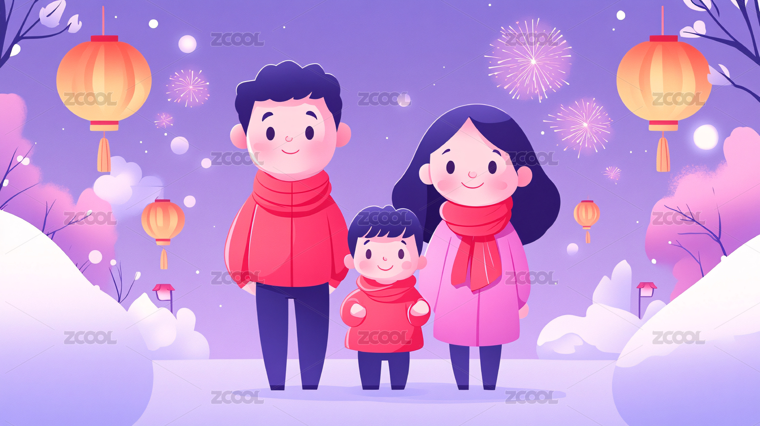 一家人团圆全家福家庭幸福团聚节日聚会插画