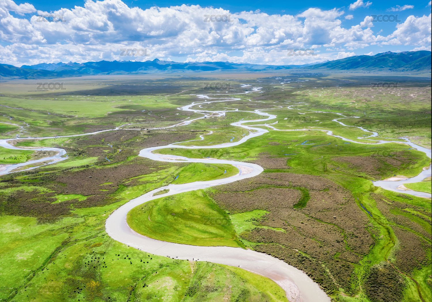 甘肃甘南黄河大草原玛曲阿万仓湿地蜿蜒河流