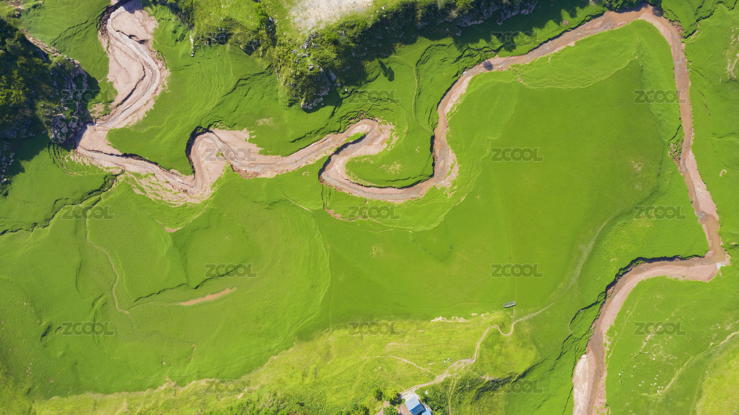 中国四川川西草原上的河流河曲