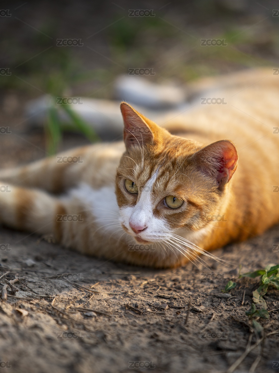 公园草地上趴着的橘猫