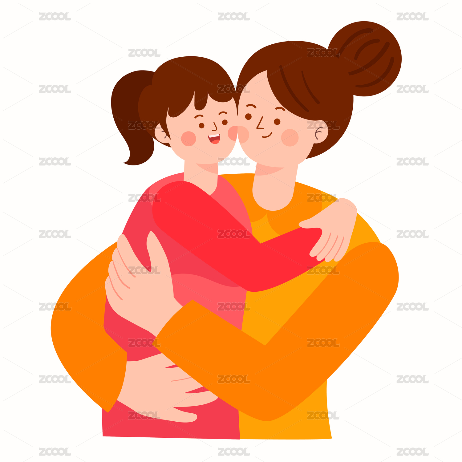 橙色,温馨,妈妈,拥抱,自闭症,孩子,母爱,小孩,抱孩子,卡通