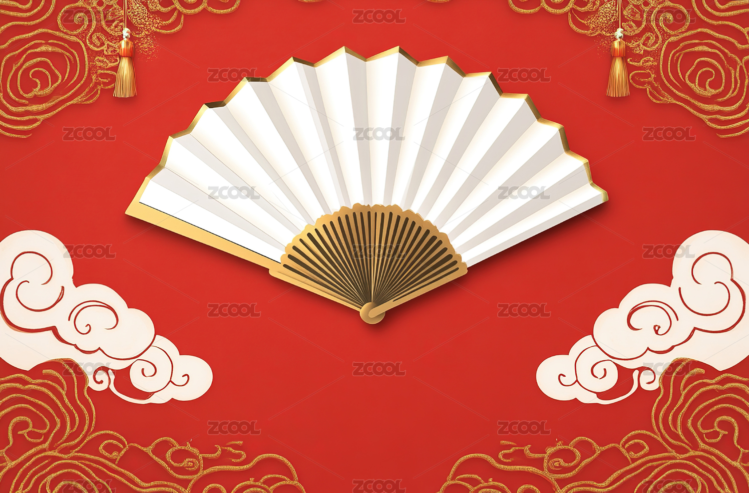 金红扇子红色祥云