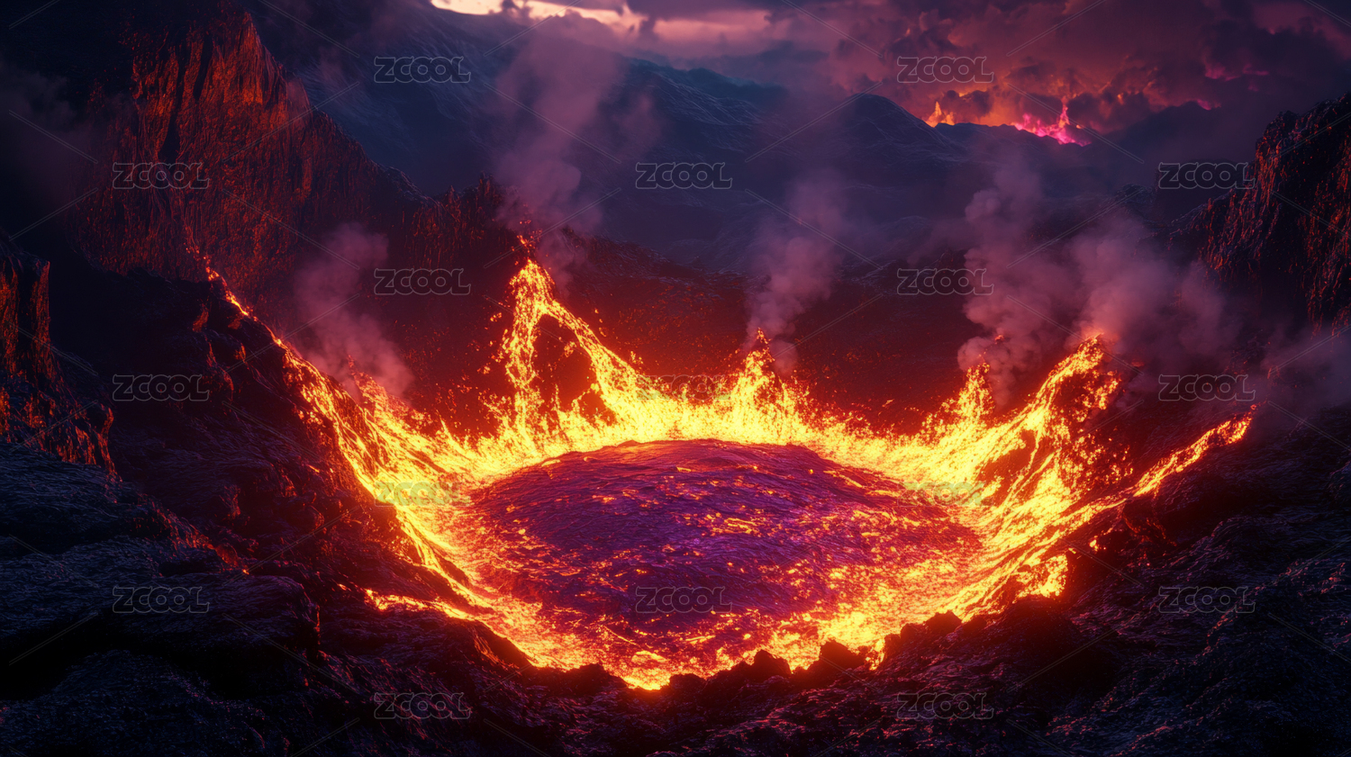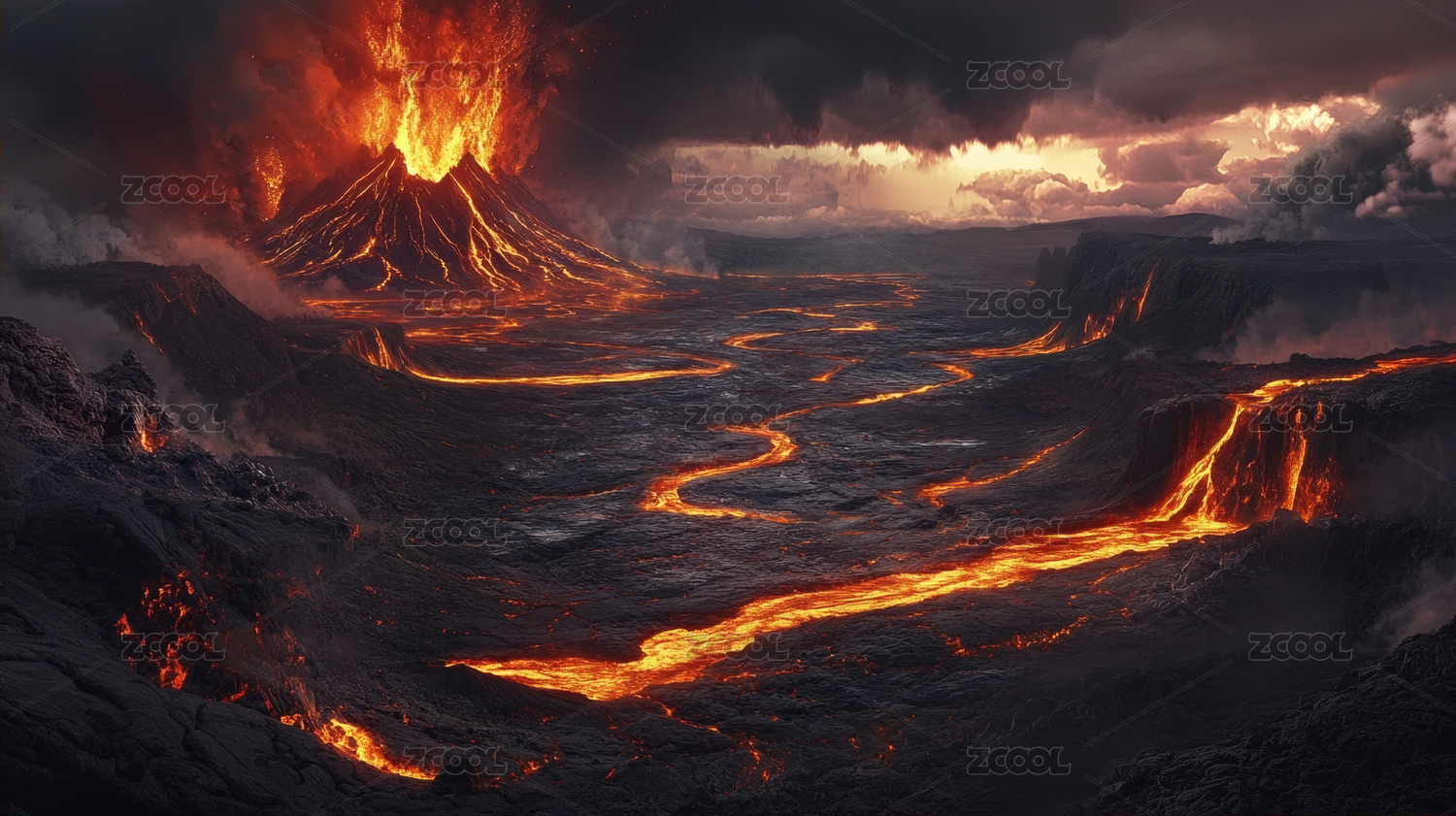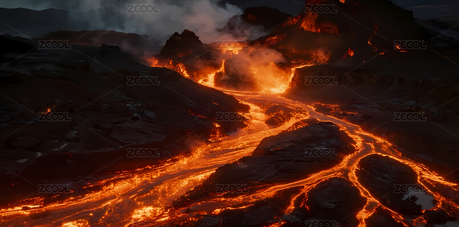 火山喷发熔岩流淌景象