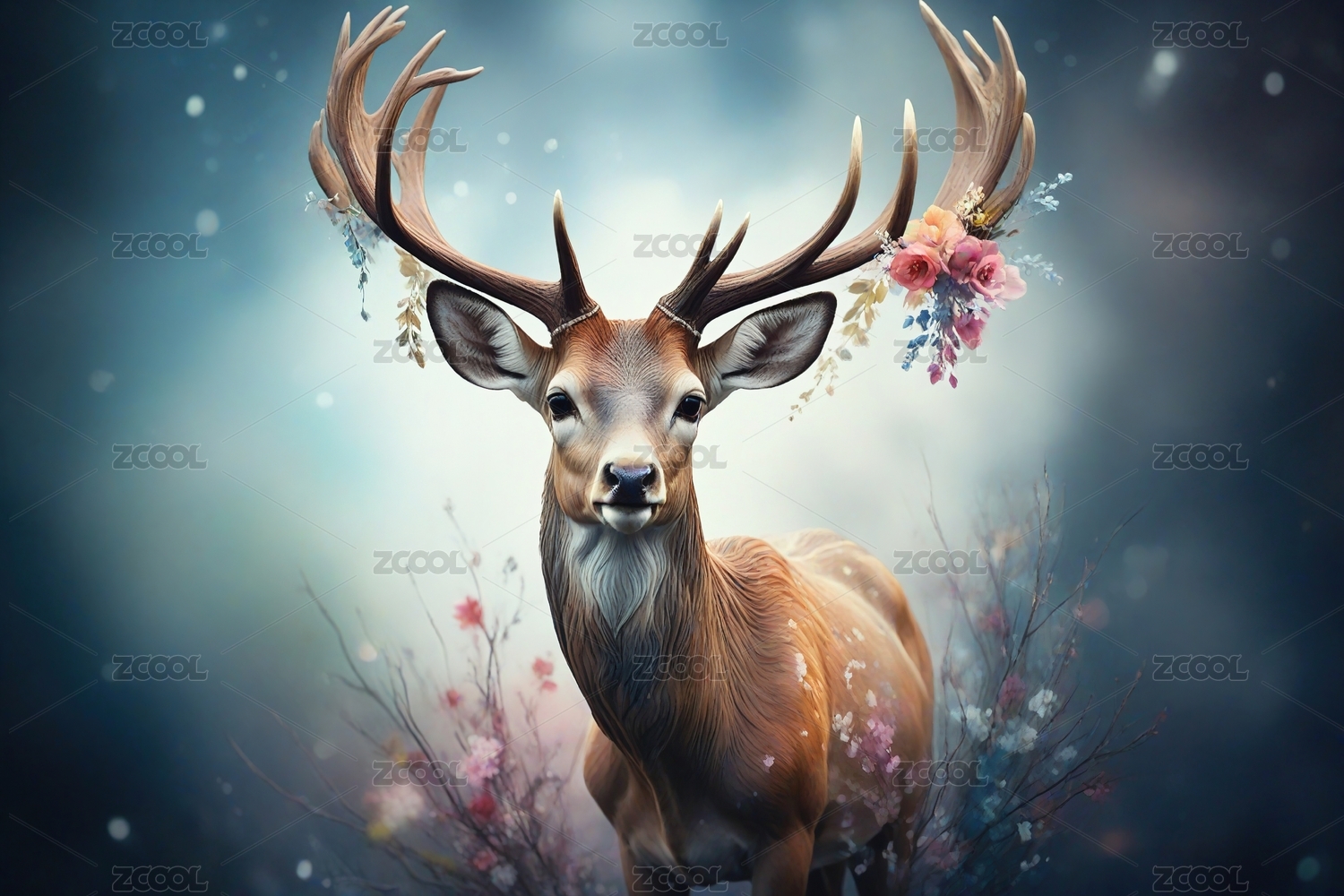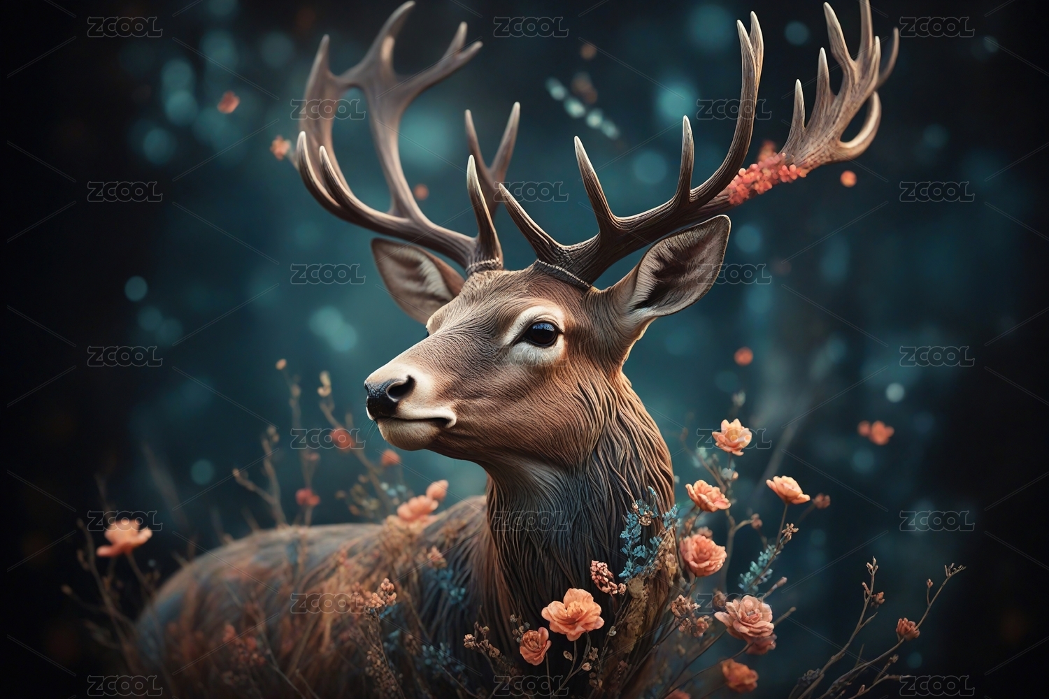 梅花鹿可爱唯美野生动物3D卡通插画壁纸