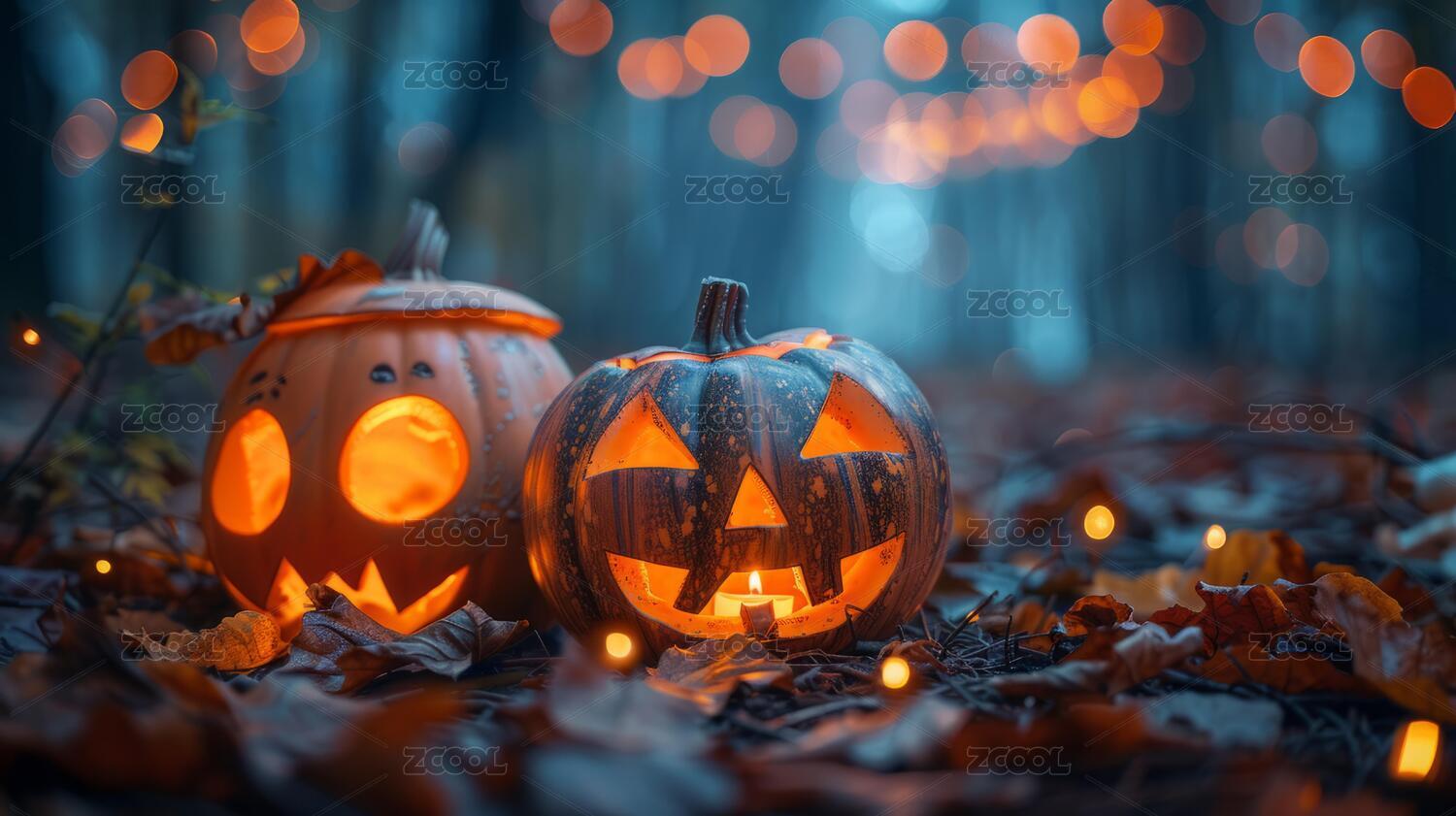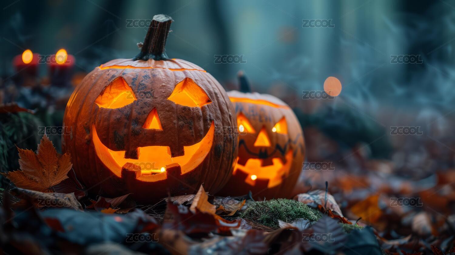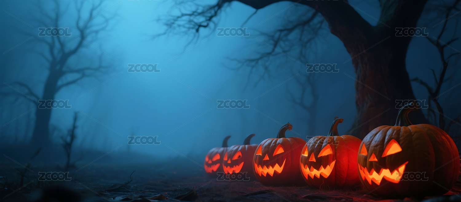 3D渲染万圣节场景南瓜怪兽三维恐怖背景