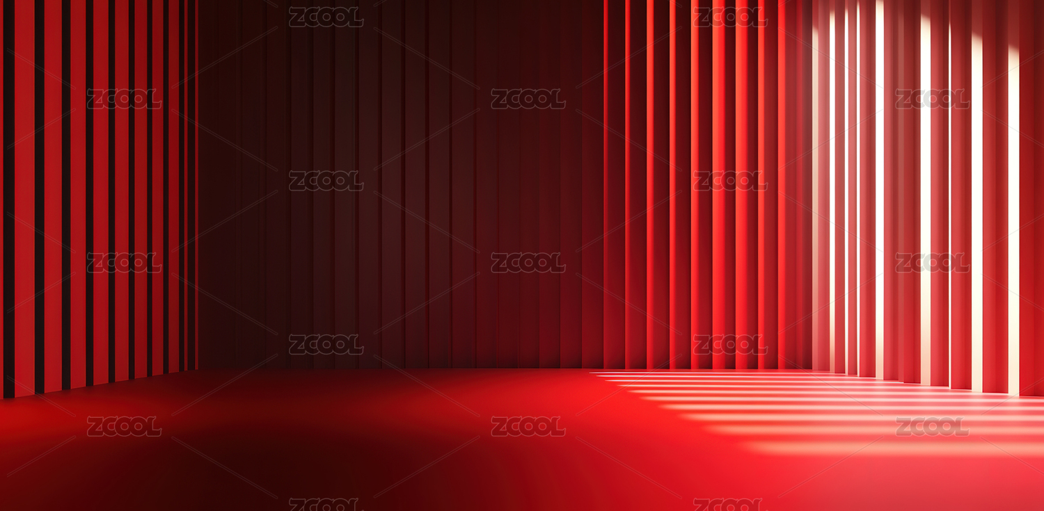 红色条纹光影的室内空间