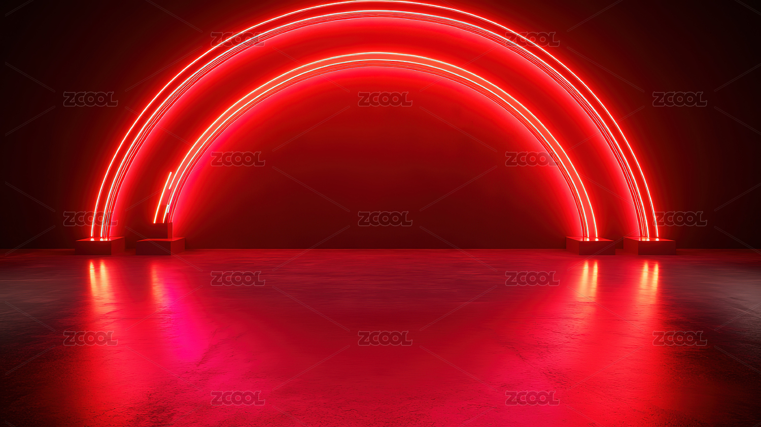3D红色发光圆形电商产品展台