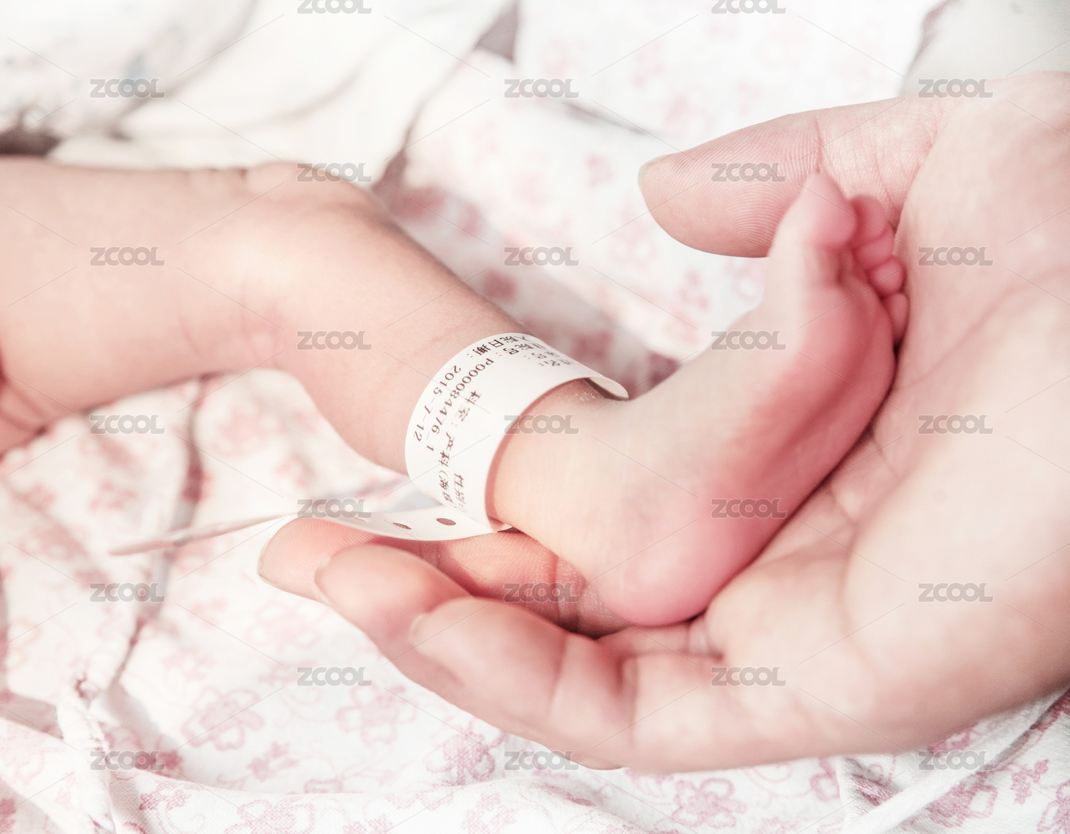 成年人手握初生婴儿小脚