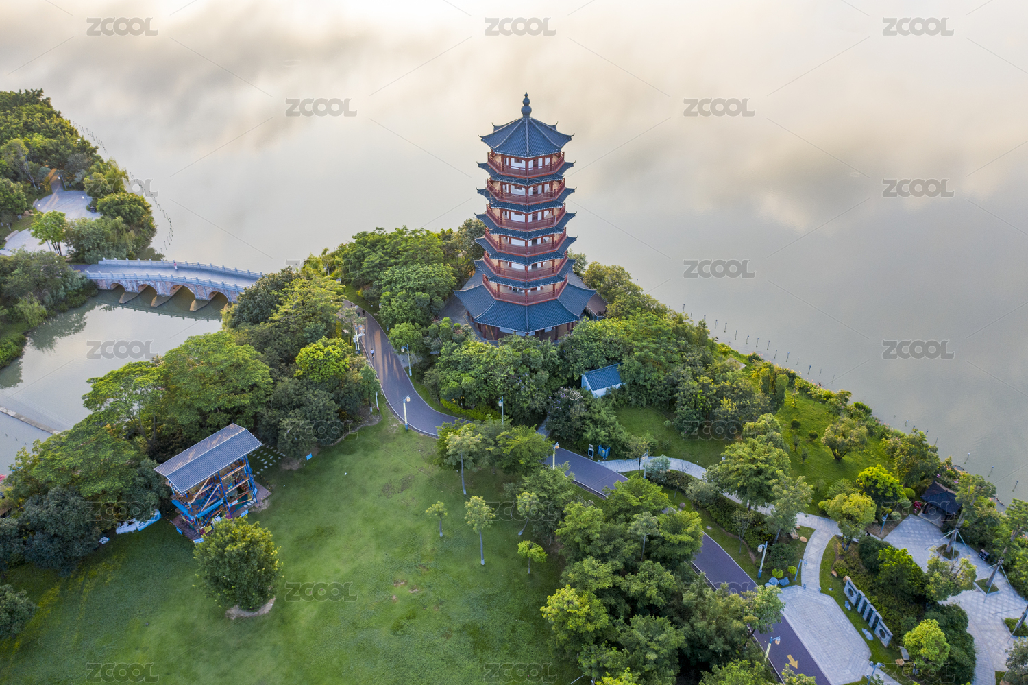 航拍中国广东东莞华阳湖湿地公园自然风光