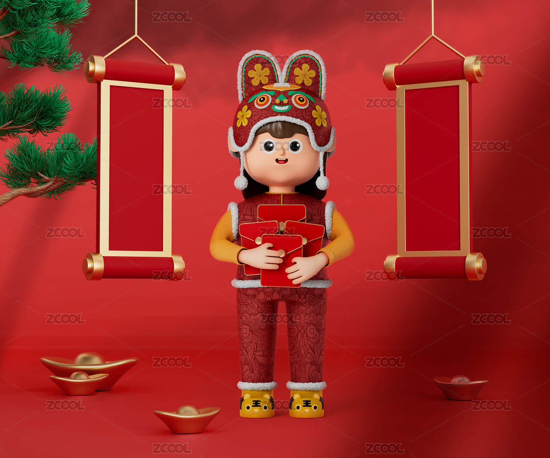 HEVCSF2022,虎年,新年,春节,福字,福娃,拜年,新春,红色,3d