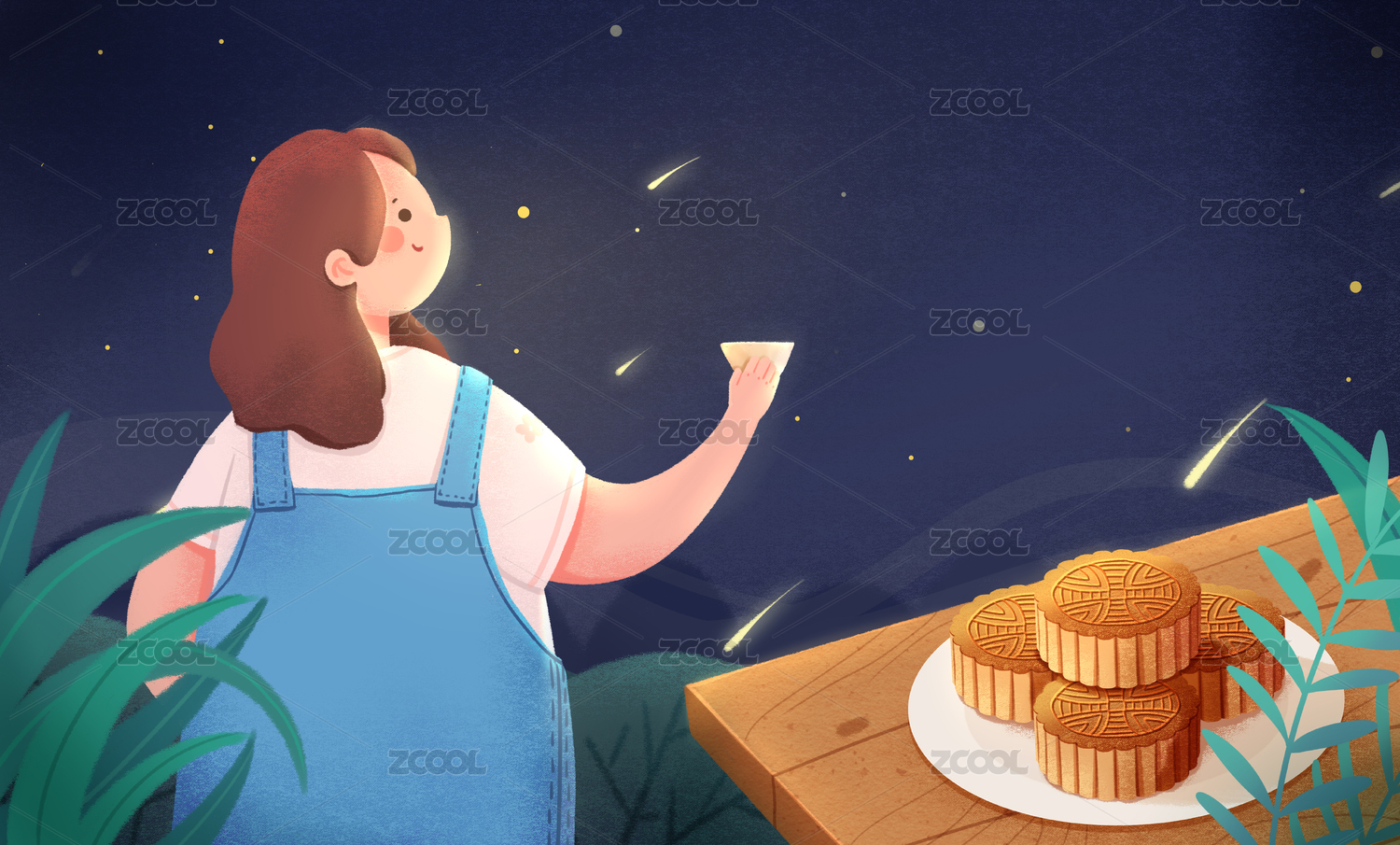 月夜下的月饼插画