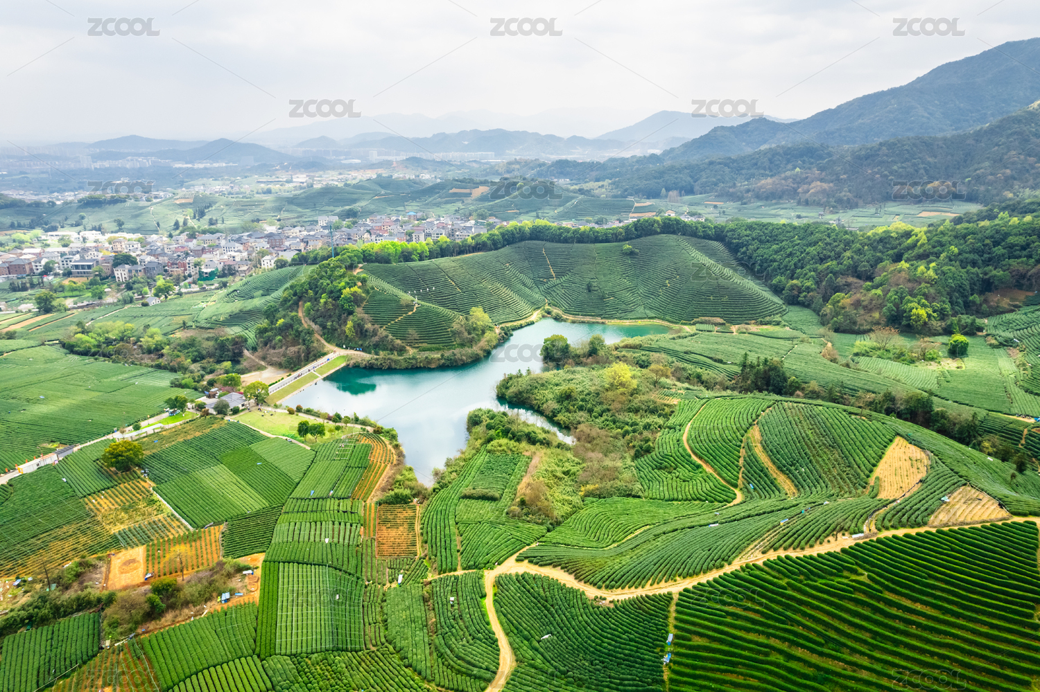 航拍杭州龙坞茶镇