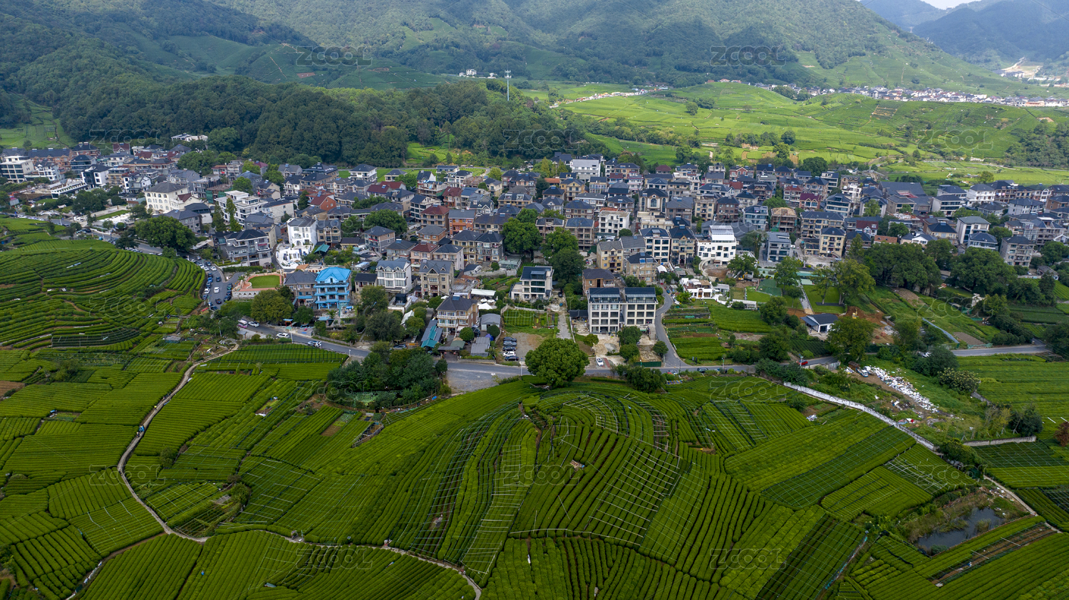 航拍浙江龙坞镇的龙坞茶园村庄景观