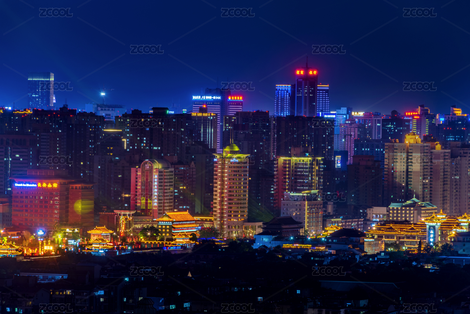 中国陕西西安城市夜景风光