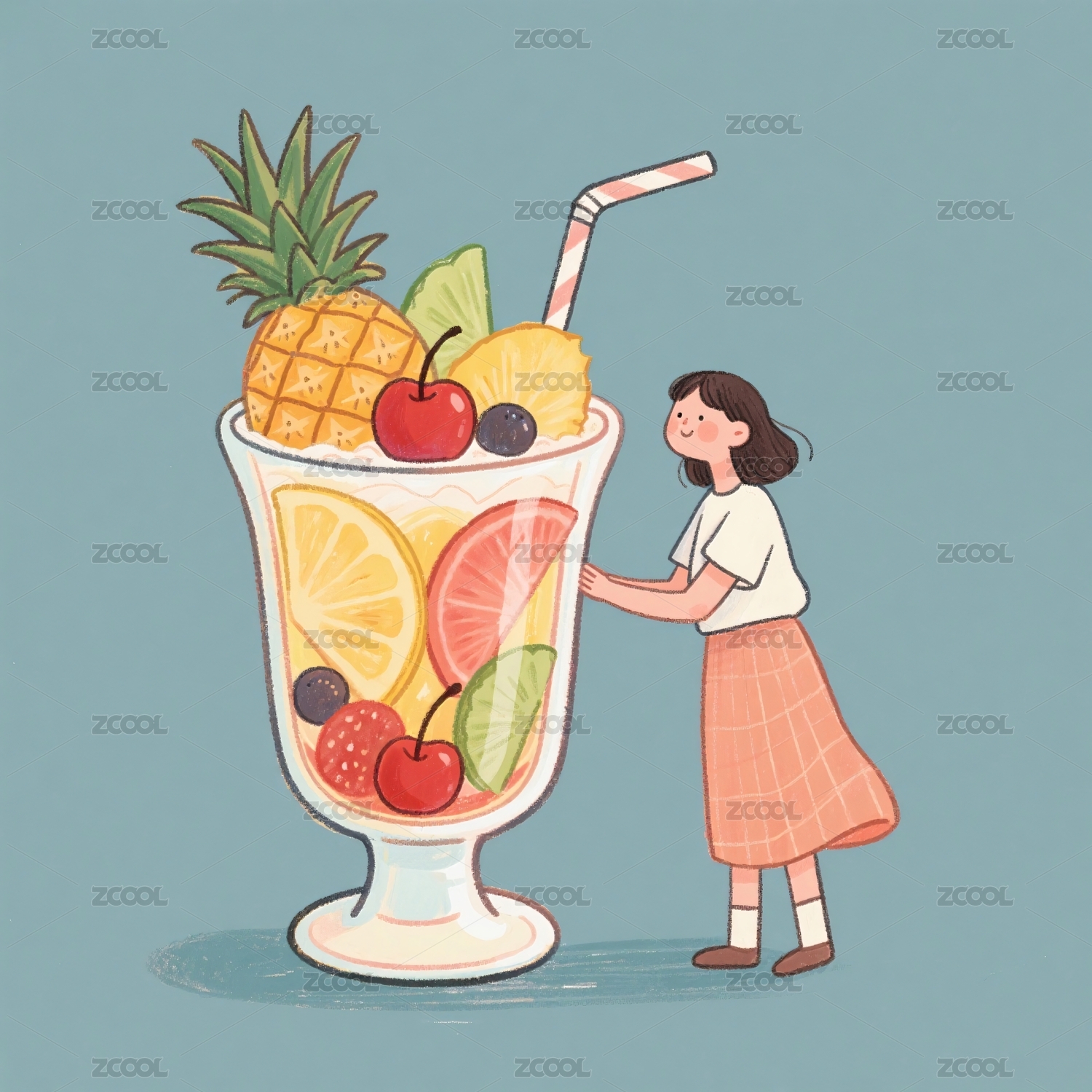 夏日水彩插画/西瓜芋圆红豆珍珠沙冰