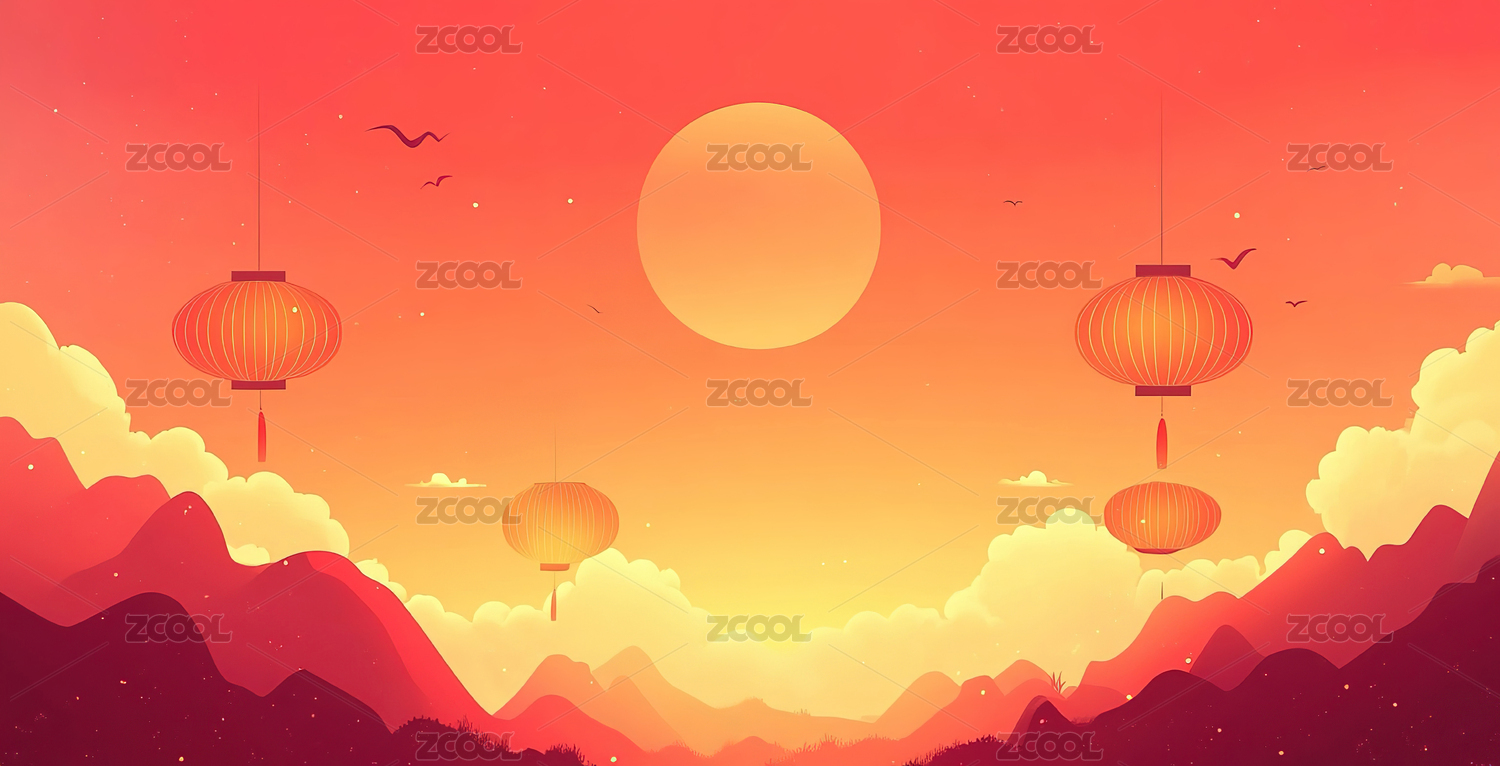 夜空满月与孔明灯中秋佳节月圆人团圆