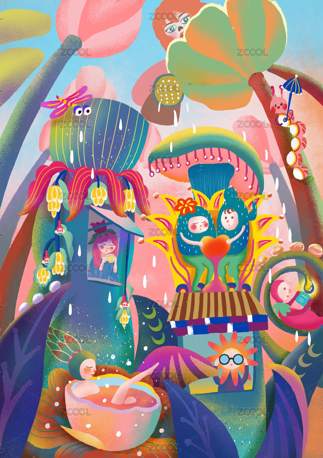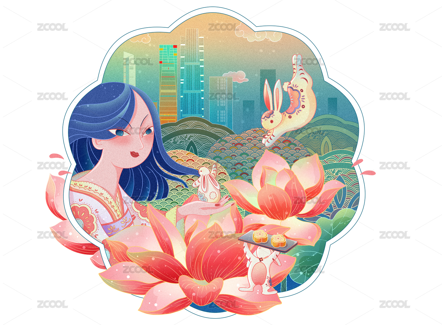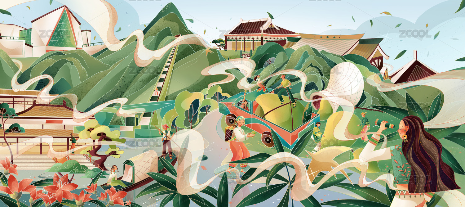 女孩手持望远镜眺望远处风景 国潮风大场景