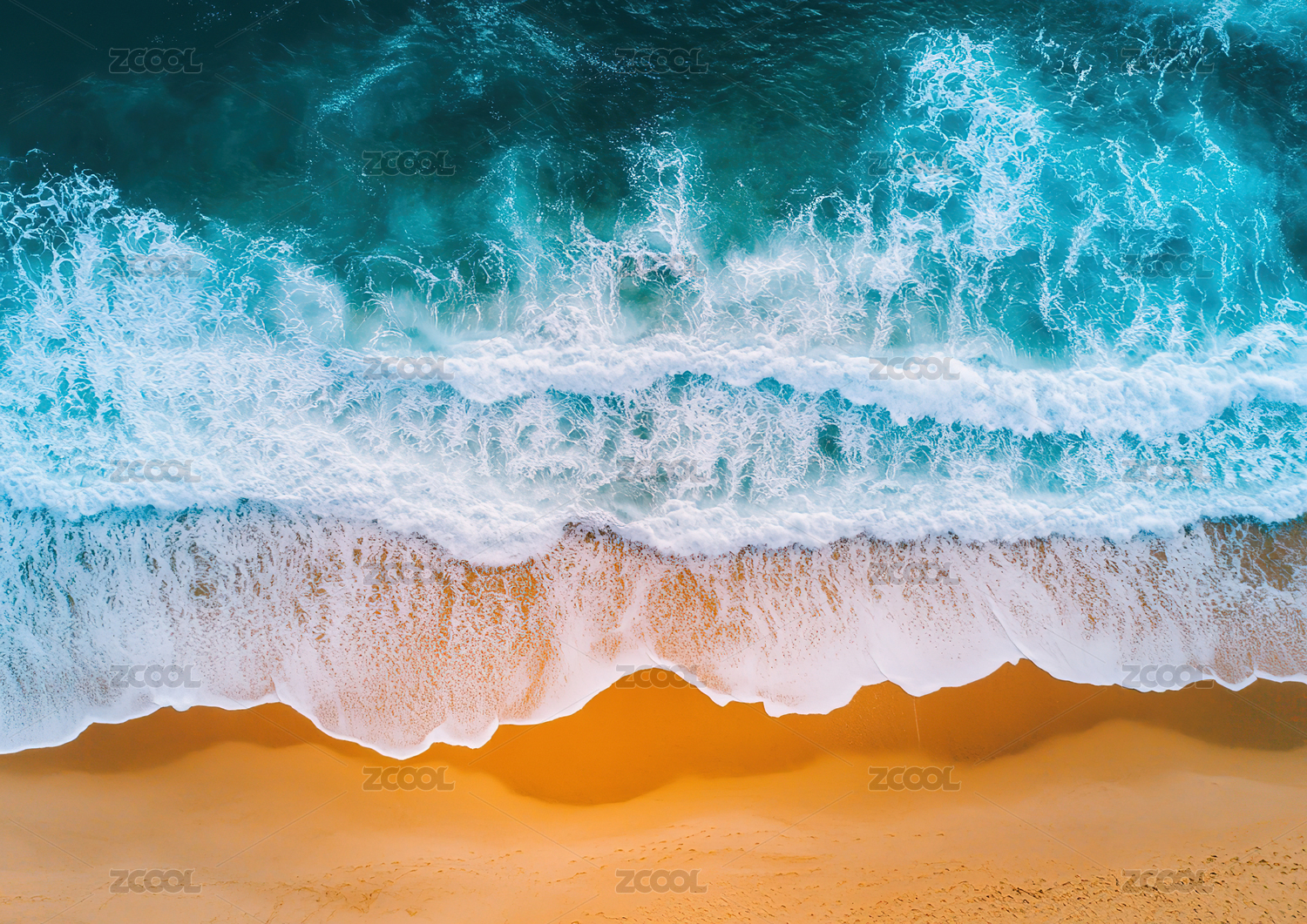黄色沙滩与蓝色海洋海浪航拍视角背景