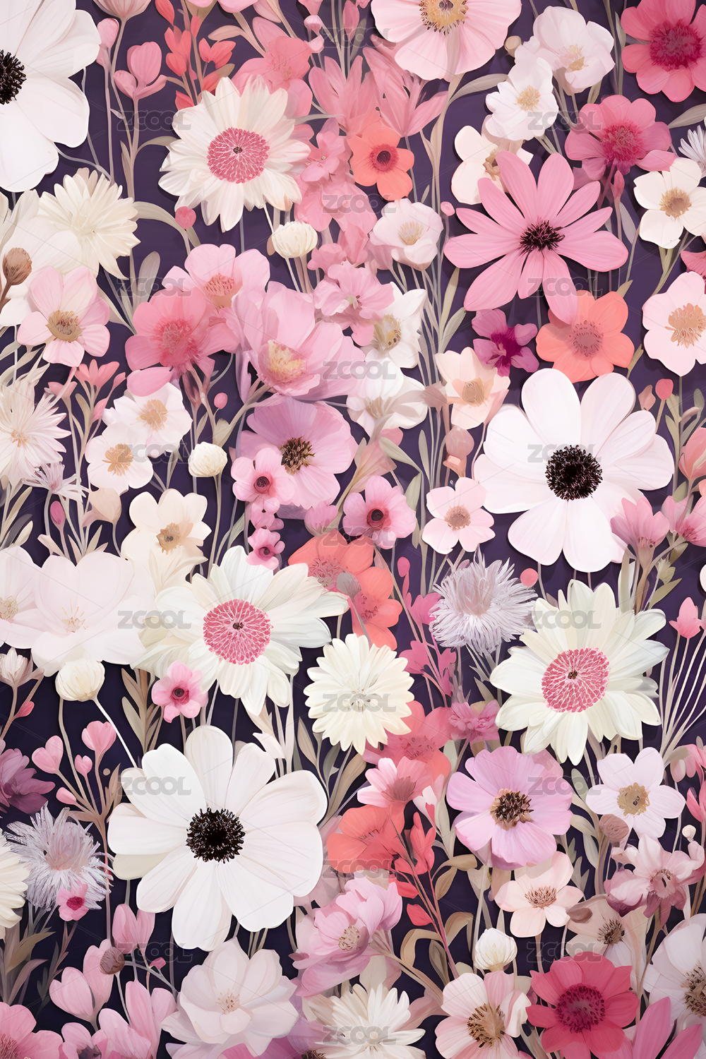 数码复古彩色复杂花卉装饰抽象图形海报背景