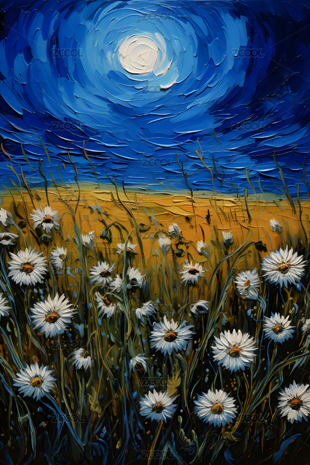 户外花田油画插画背景