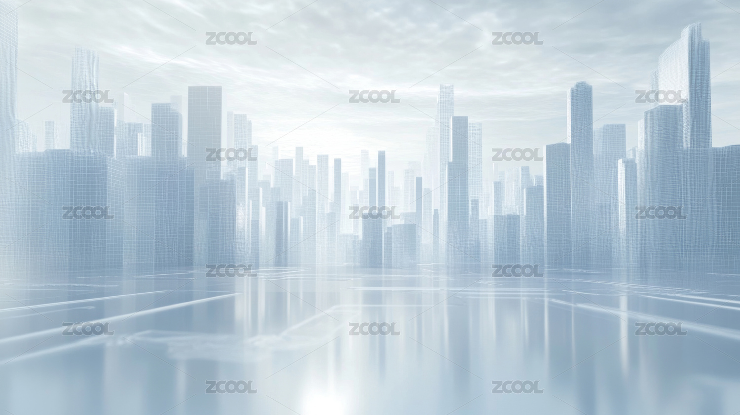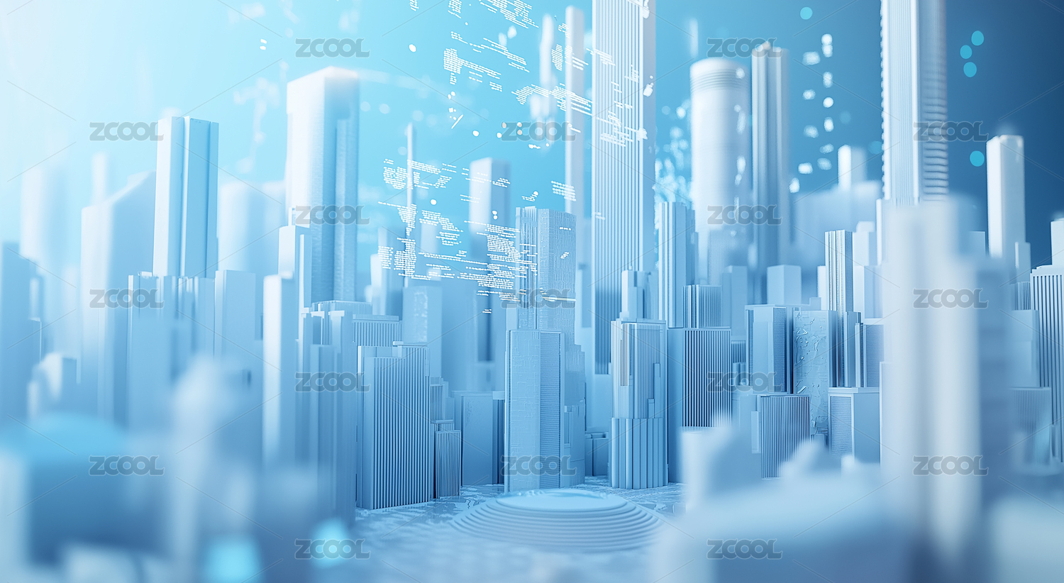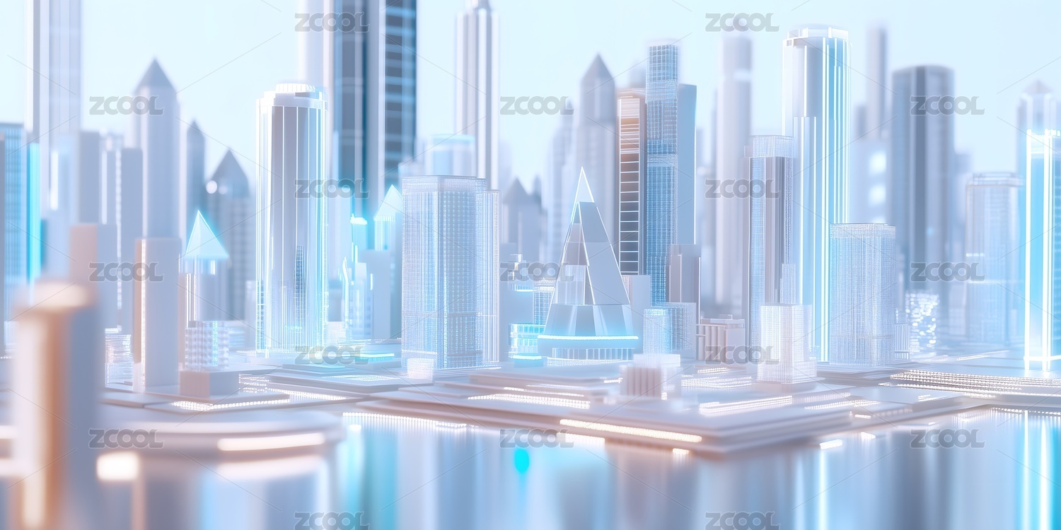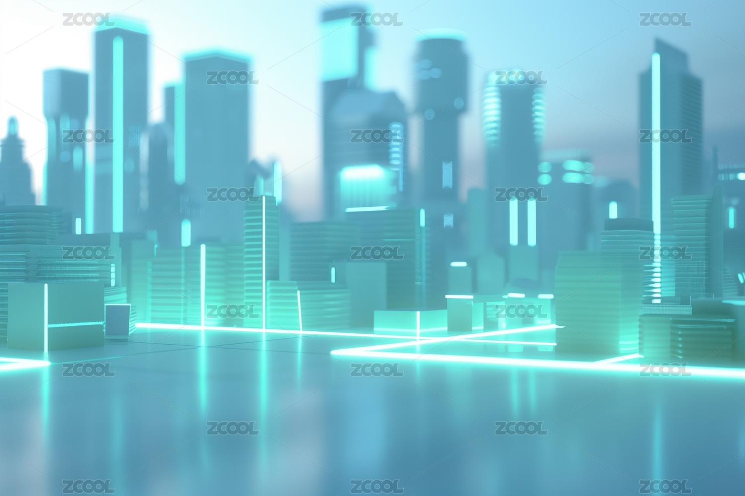 科幻抽象绿色晶体城市建筑模型3D立体插画