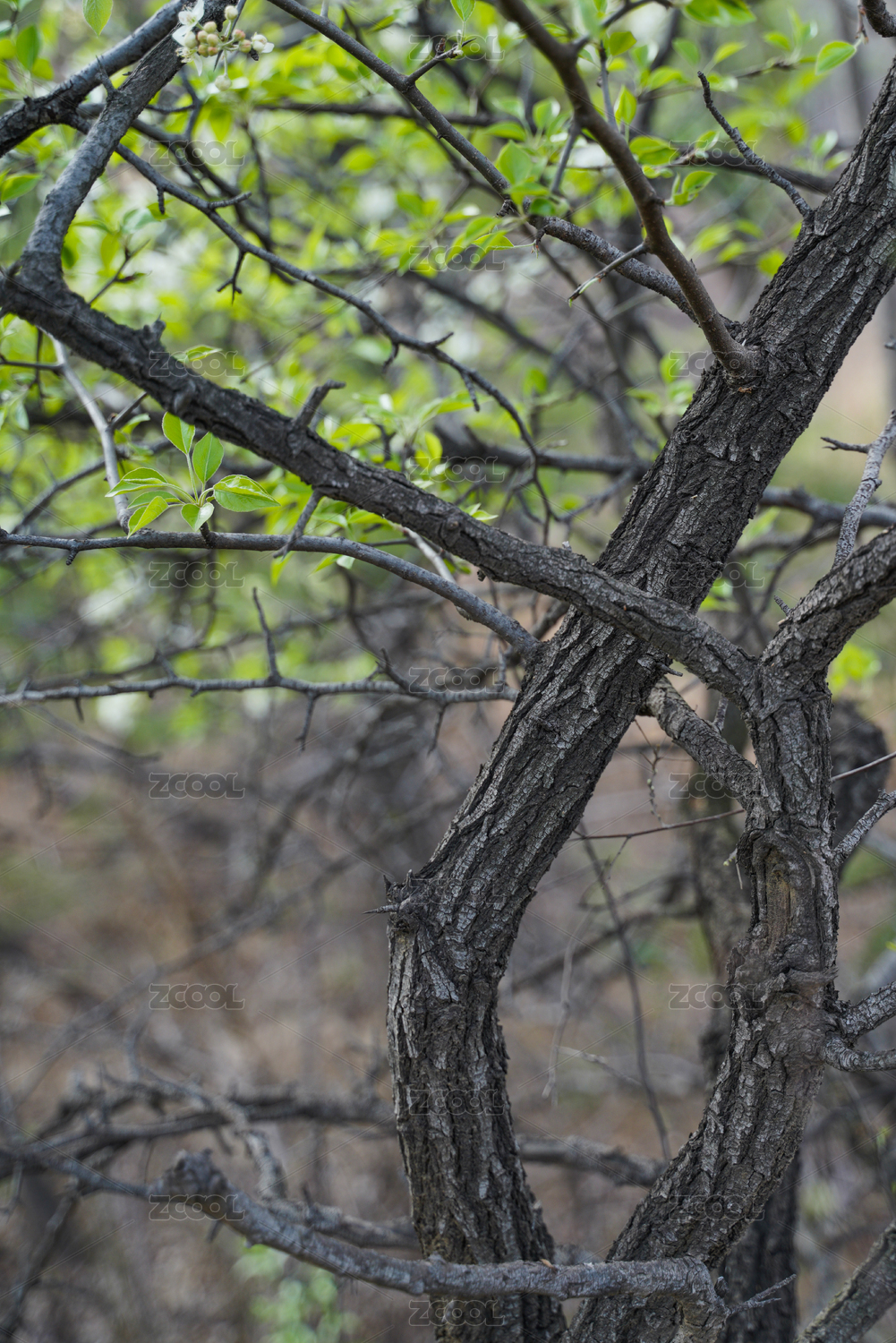 春天长出嫩叶的野梨树