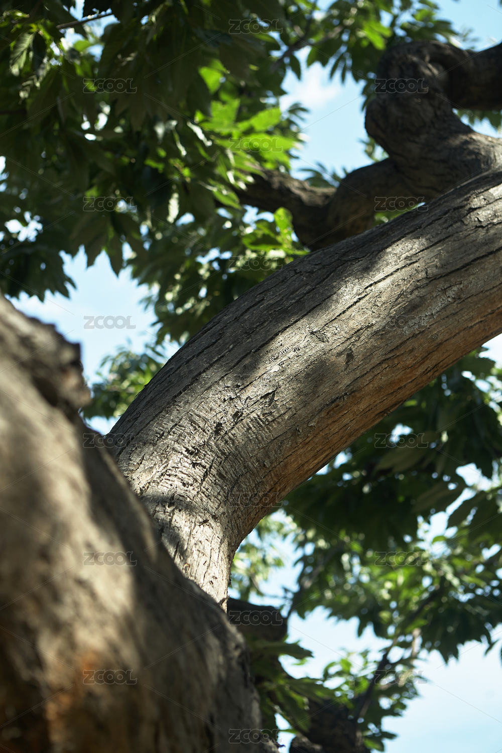 老树树干与繁茂枝叶
