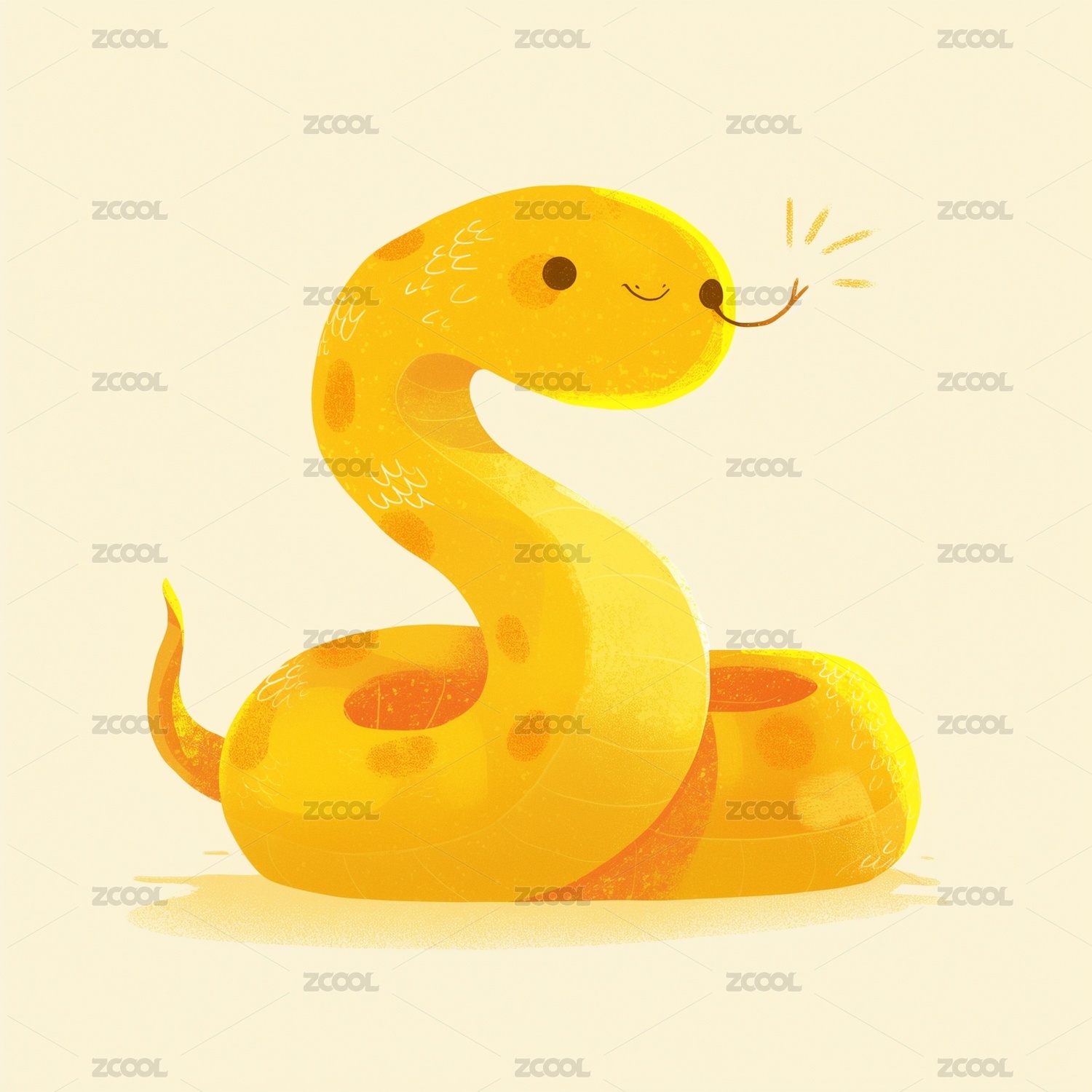 黄色金色好运卡通可爱小蛇插画扁平