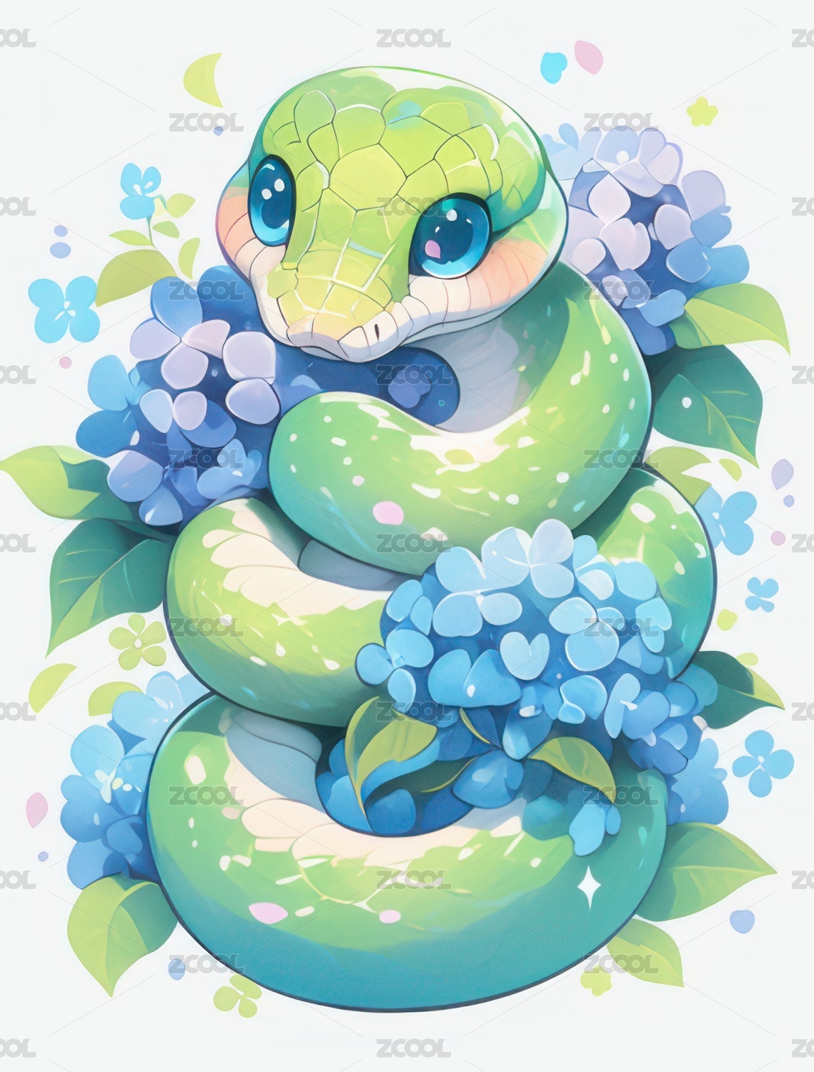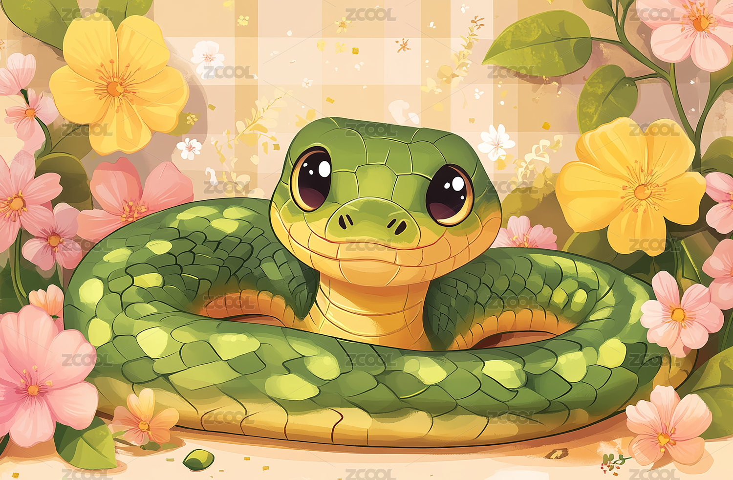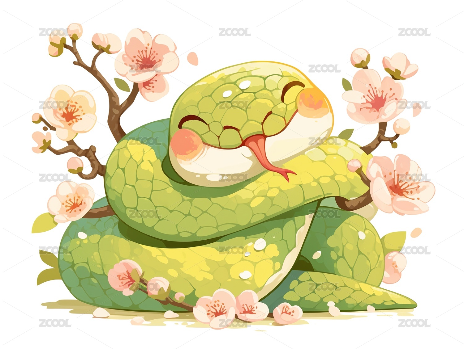 卡通蛇年2025生肖蛇T恤图案印花插画