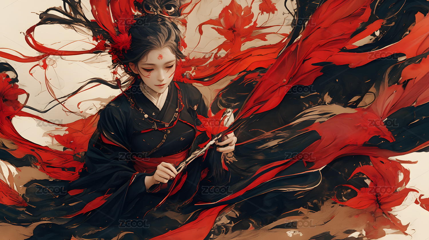 手绘卡通古风身穿传统服饰汉服漂亮女孩插画