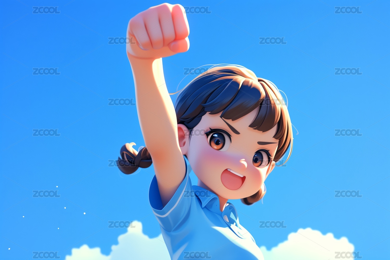3D卡通穿红色运动服拿金色奖杯的小女孩
