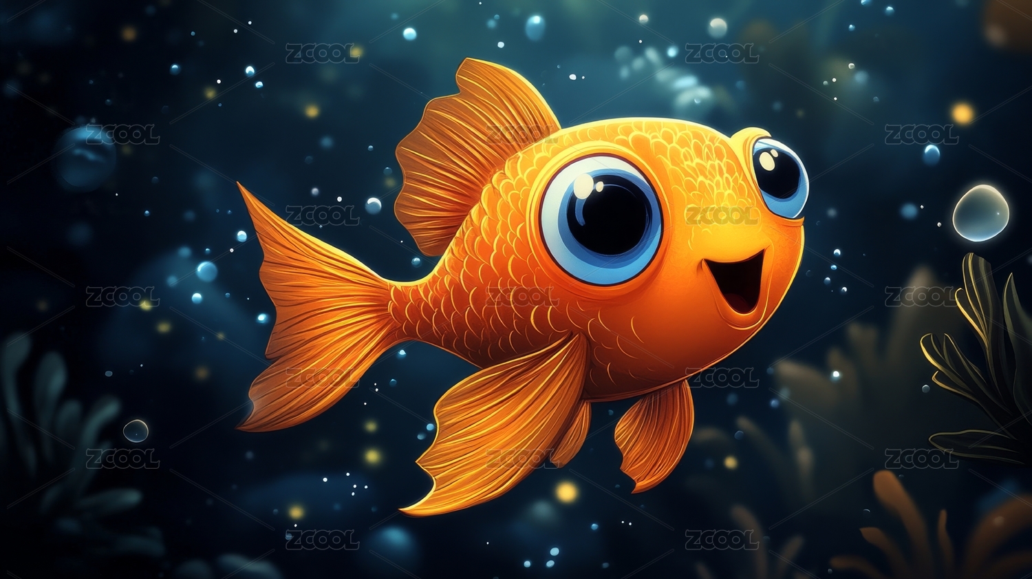 动物, 插画,金鱼, 可爱, 萌, 鱼类, 橙色, 数字艺术, 宠物, 表情