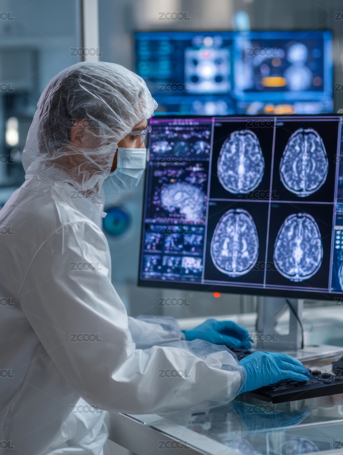 男医生在多屏幕前查看医疗影像