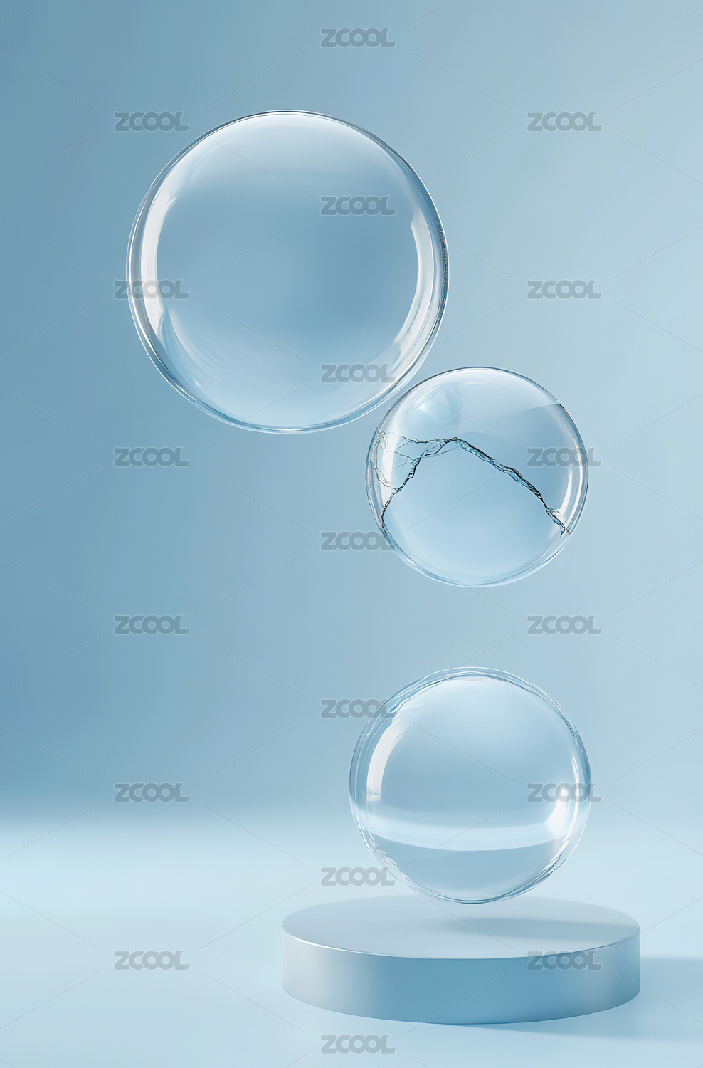 玻璃球,极简主义,光影效果,白色背景,悬浮,透明,几何形状,现代艺术,展示台,光影