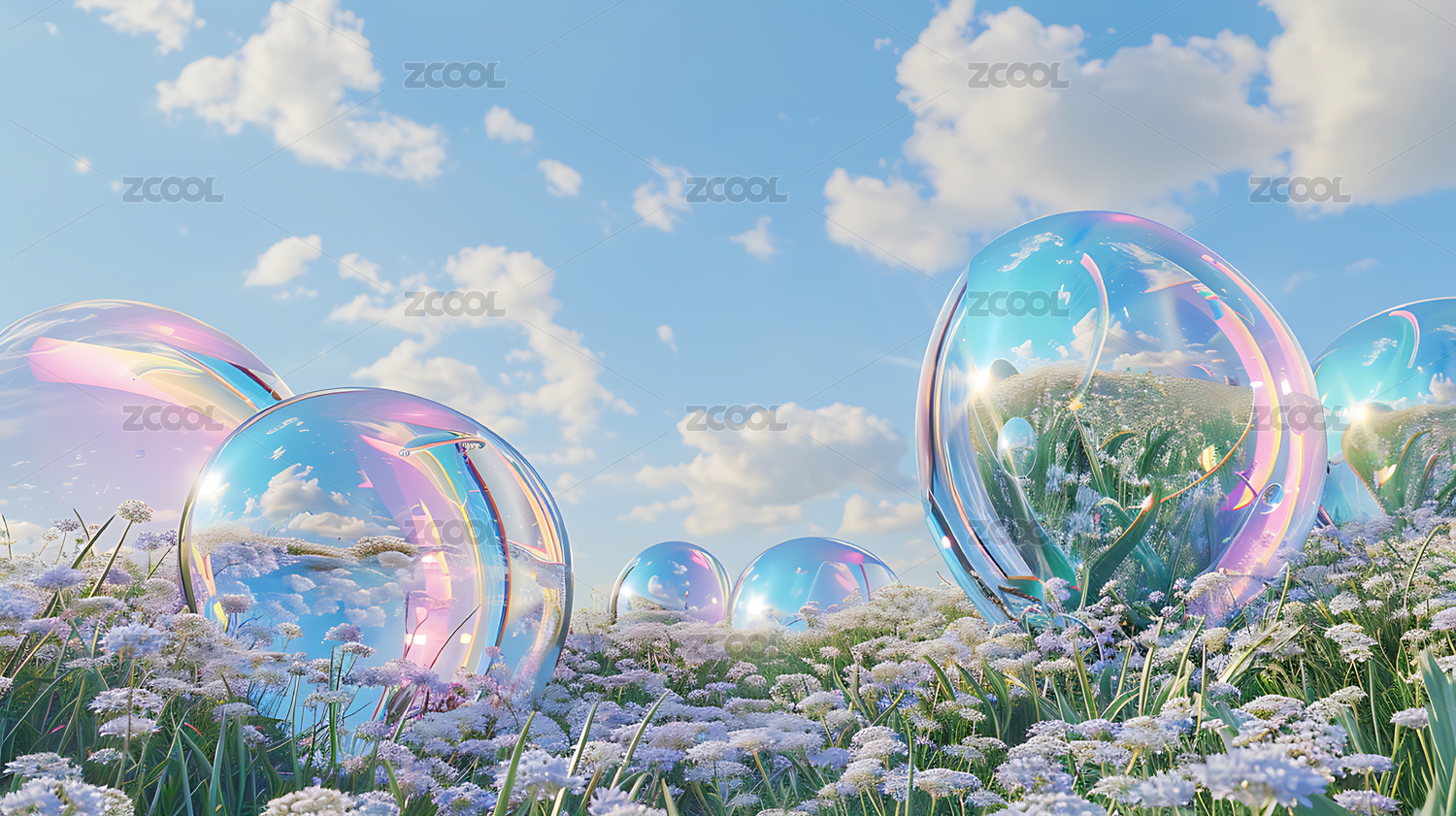 3d超现实抽象膨胀花草背景