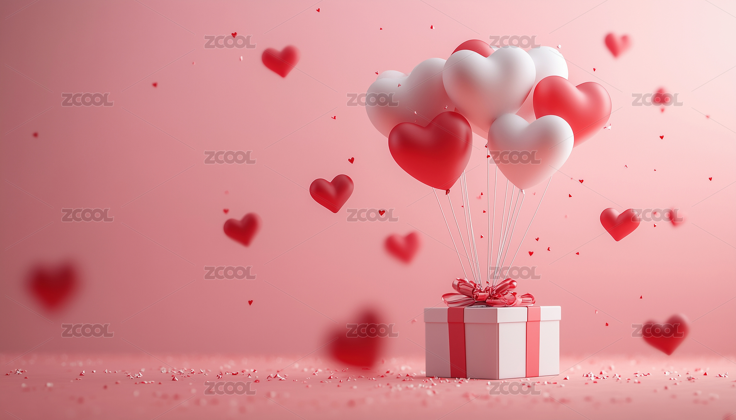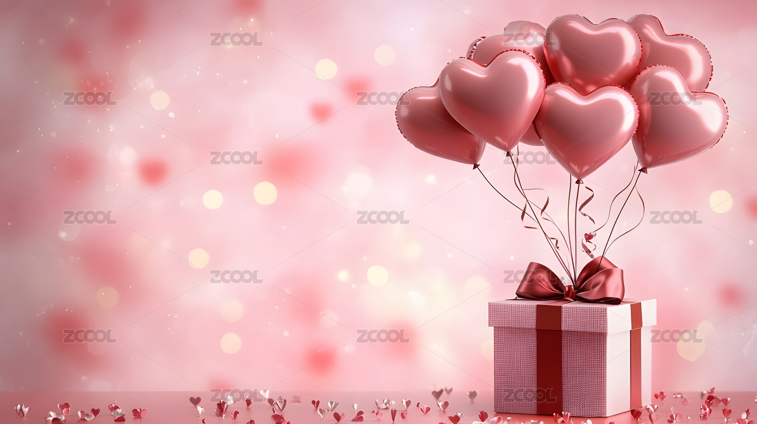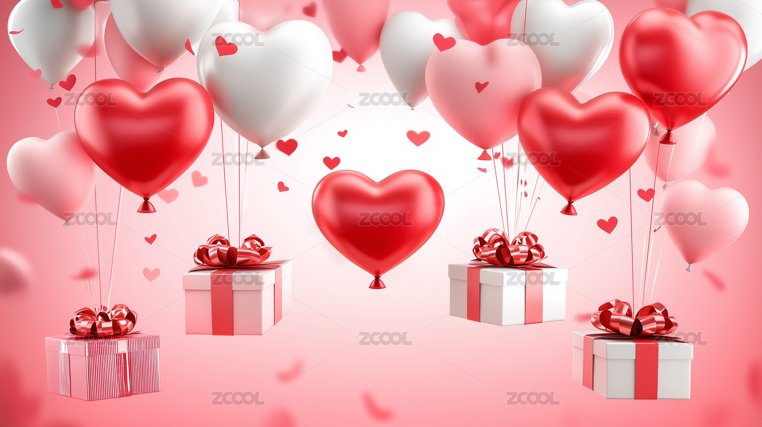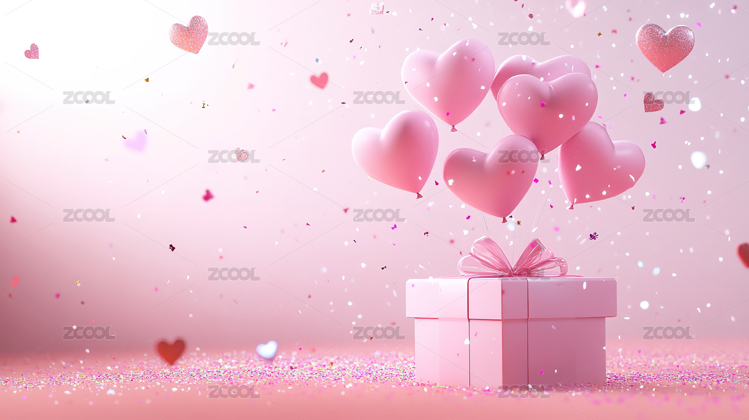 红色粉色爱心气球礼物盒节日气氛背景环境