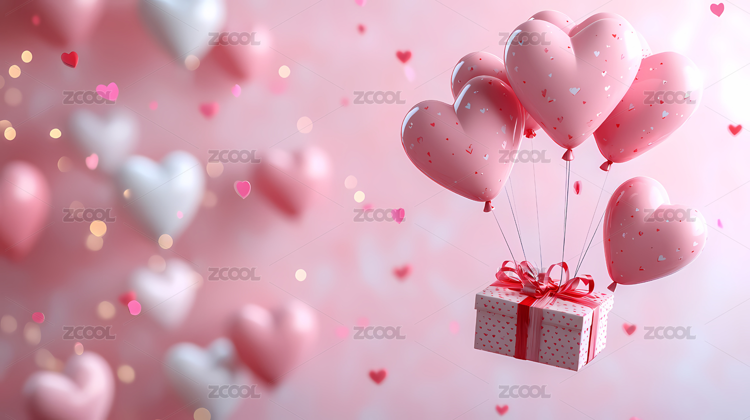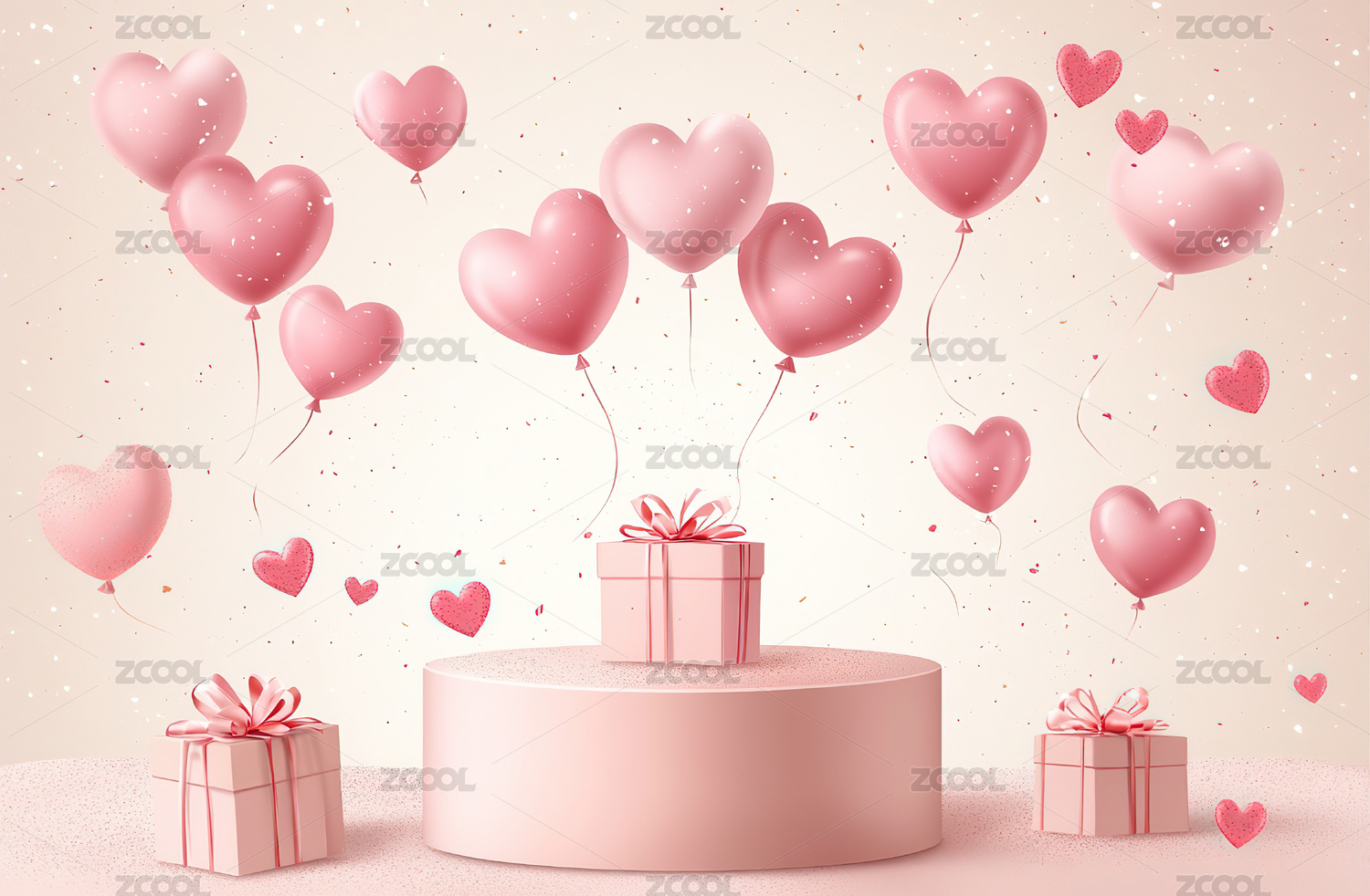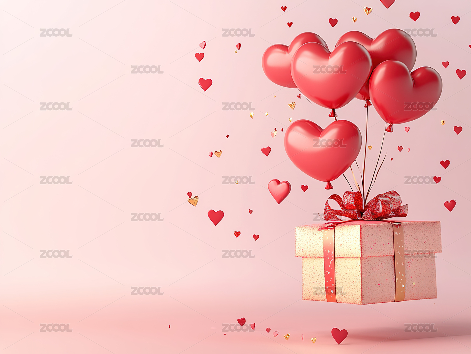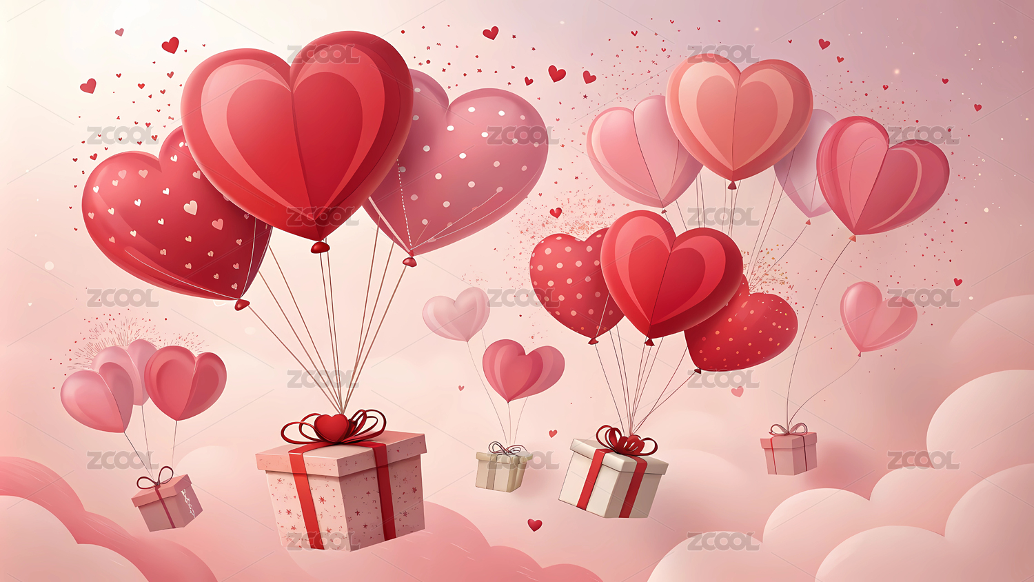 红色粉色爱心气球礼物盒节日气氛背景环境