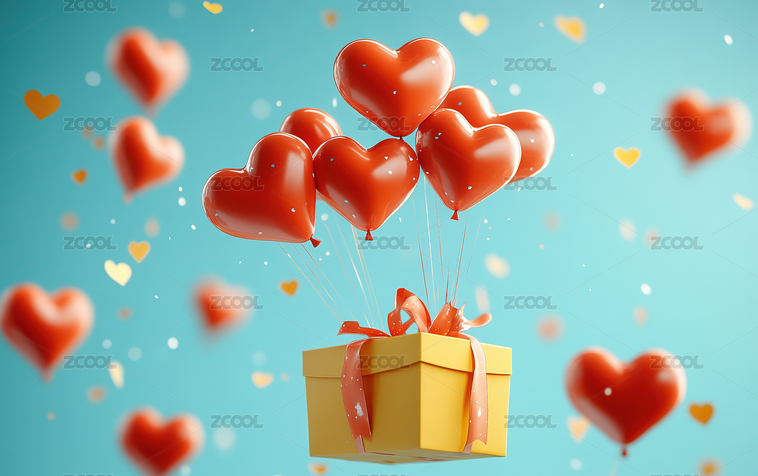 七夕情人节爱心气球浪漫礼物3D插画背景