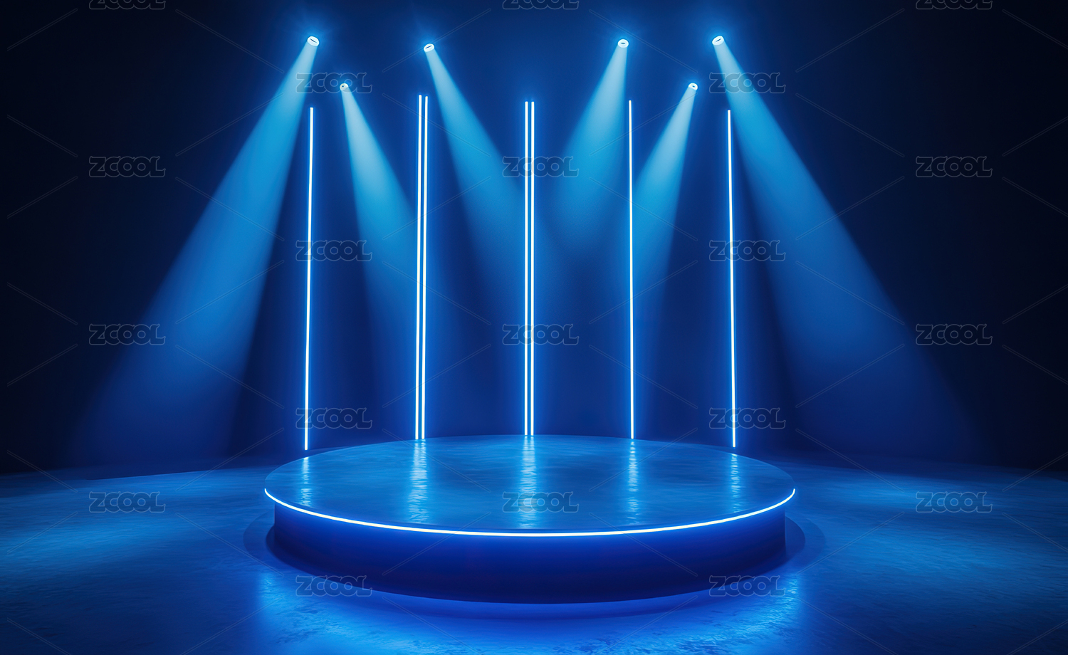 炫酷蓝色舞台灯光环形展台设计