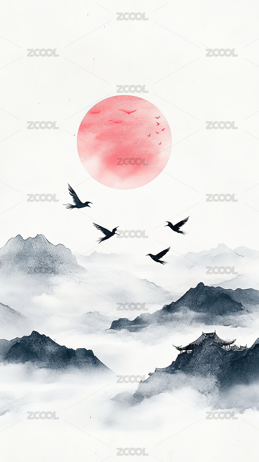 高山,自然,户外,月亮,地形,天空,风景,日落,剪影,鸟类