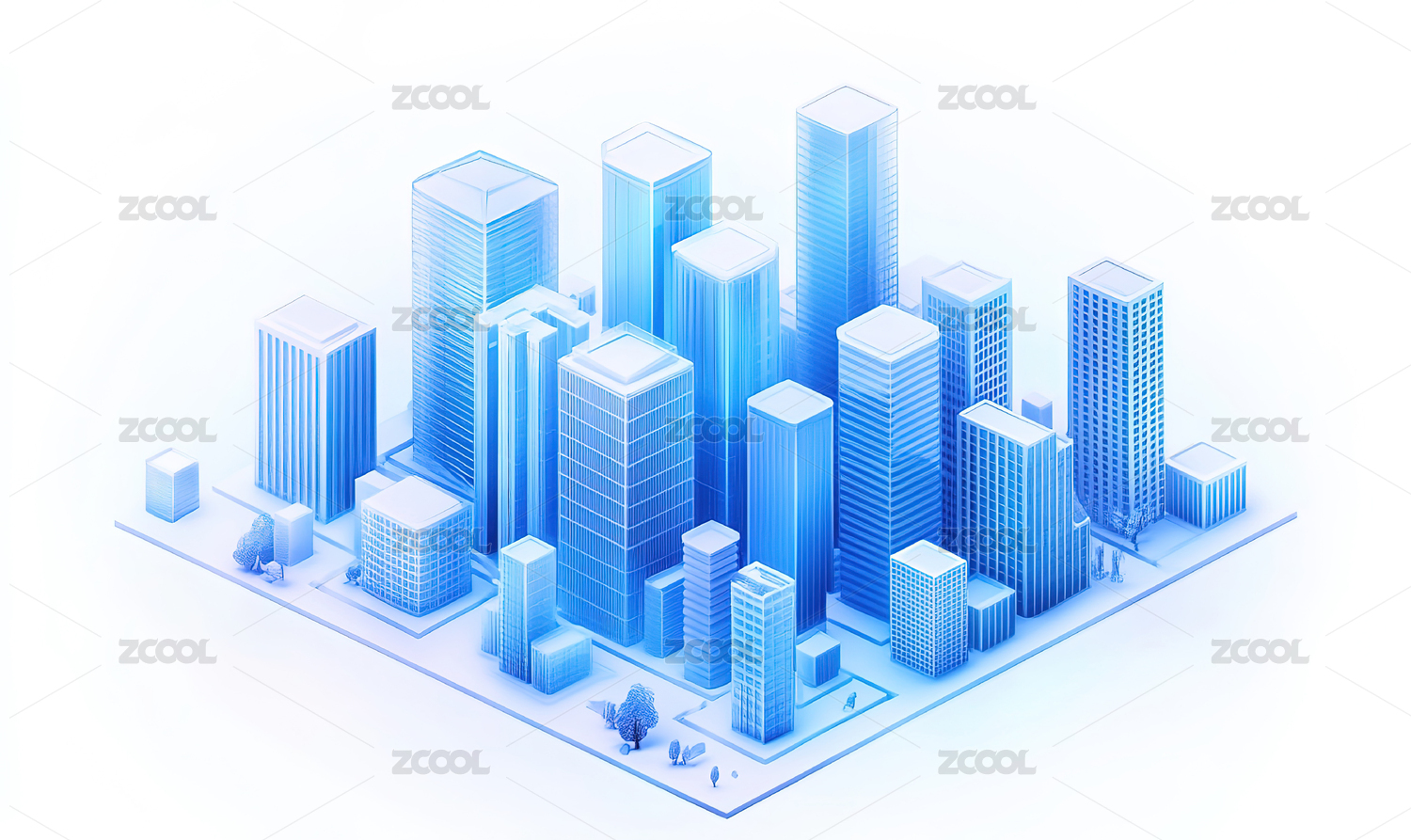 白色背景下的城市建筑特写镜头