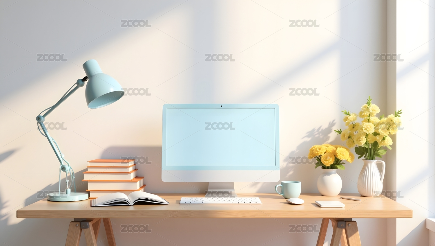 书房,桌面,电脑,显示器,耳机,水杯,桌子,键盘,鼠标,蓝牙
